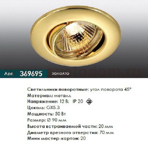 369695 SPOT NT12 270 золото Встраиваемый ПВ светильник IP20 GX5.3 50W 12V CLASSIC Штрих-код