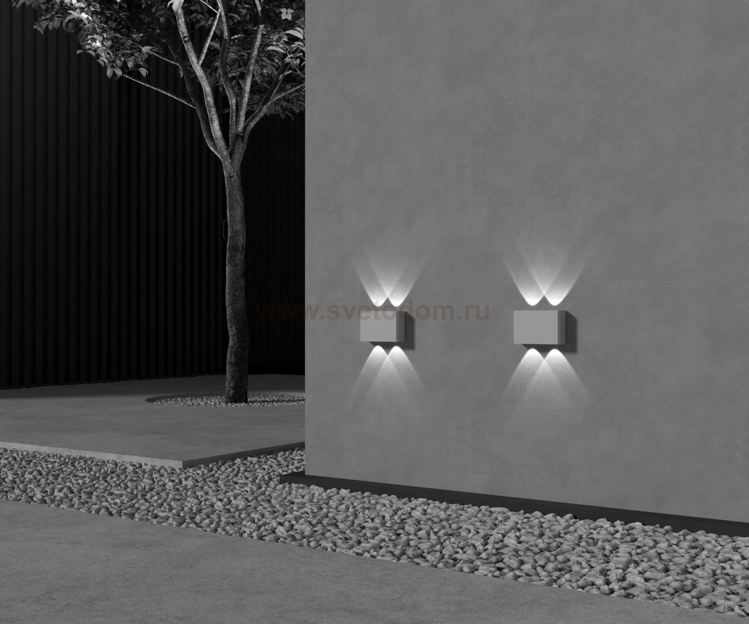 Материал корпуса - алюминий, цвета - графит, белый. Два луча света из верхней и нижней поверхности светильника. Идеальны для составления эффектных световых рисунков. LED-истоничк света - IP54.