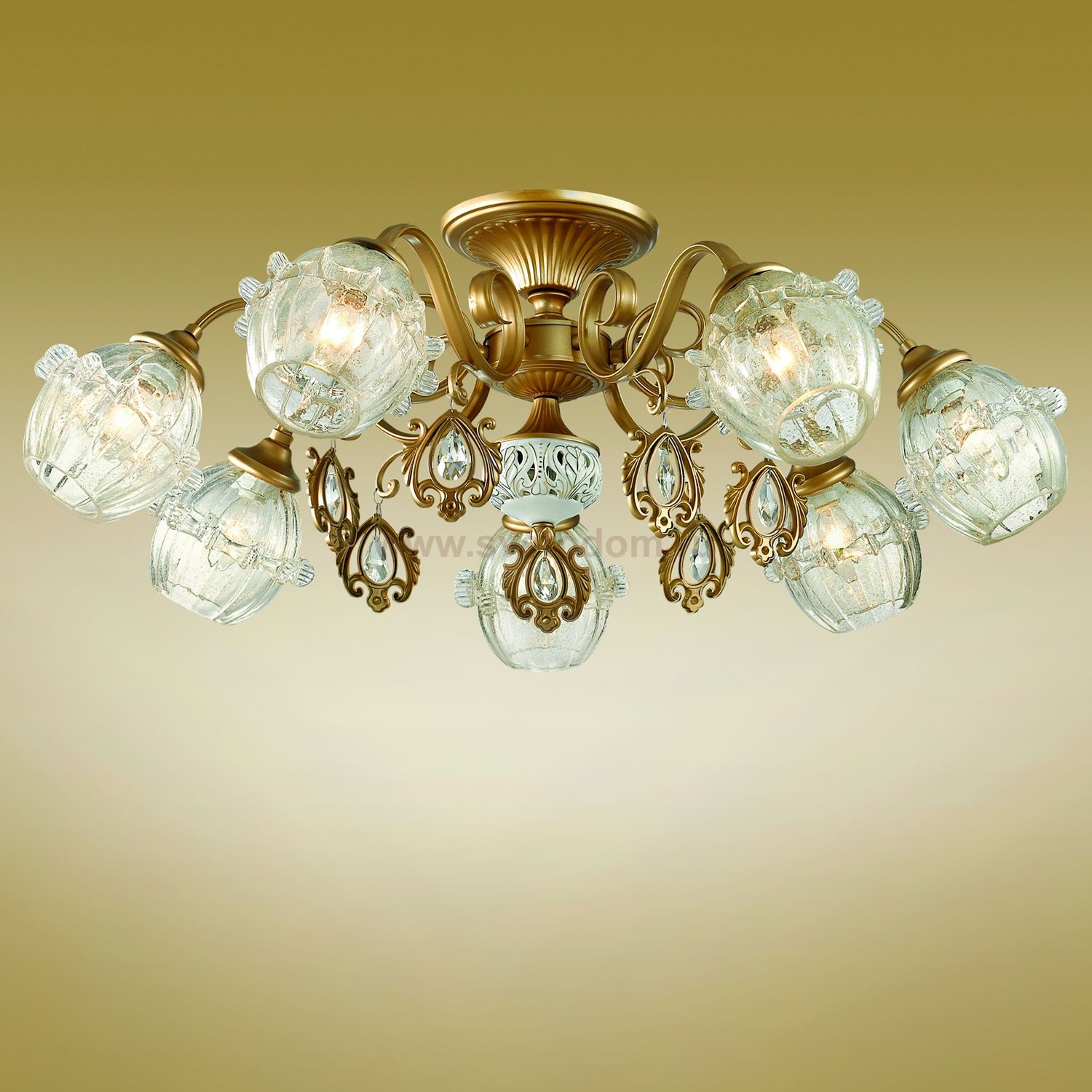 плафон: стекло ручной работы, арматура: металл, декор: хрусталь в металлическом обрамлении Материал плафона