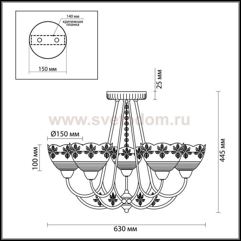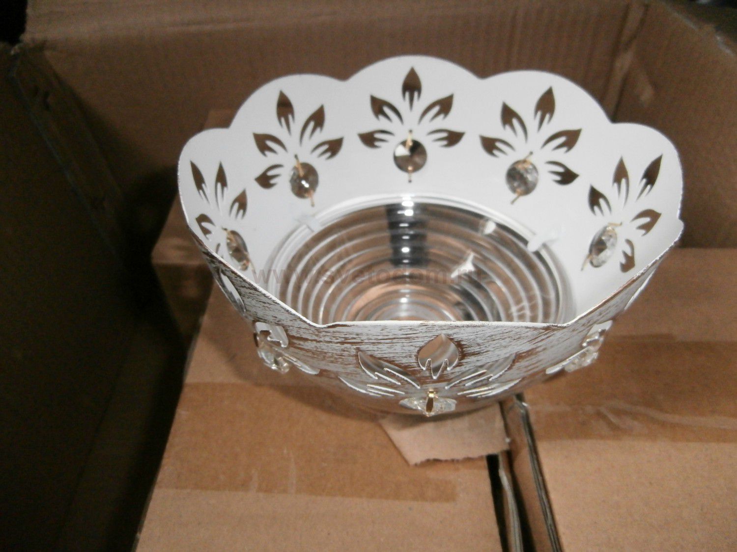 Арматура, декор: ажурные металлические элементы, хрустальная подвеска; плафон: тисненое стекло, металл с ажурным рисунком Материал плафона