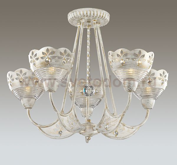 Отличный вариант домашнего освещения Odeon light Люстра потолочная 3209/5 серии NOVIA оформлена в классическом стиле. Люстра состоит из удивительных плафонов из стекла с тиснением и металлической части с ажурным рисунком, и белой с золотой патиной арматуры, украшенной металлическими декоративными элементами. Данная модель смотрится очень эффектно благодаря своей оригинальности. Цоколь E27. Мощность 5*60W. Нет ламп в комплекте.
