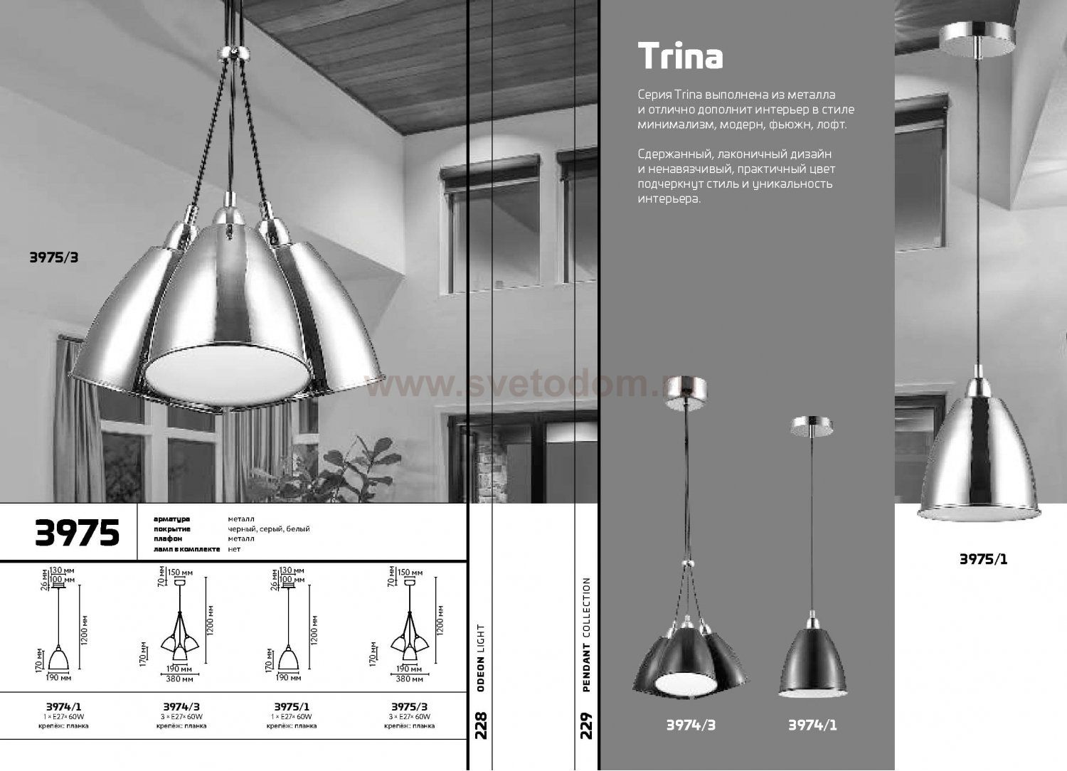 Подвес 3974/1 серии Trina выполнен из металла и отлично дополнит интерьер в стиле минимализм, модерн