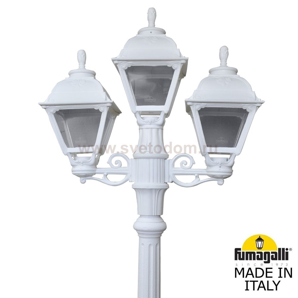 Касаемо артикула U23.156.S21.WXF1R важно знать - Садово-парковый фонарь FUMAGALLI серии CEFA, модель CEFA /GIGI/BISSO 2+1. Парковый торшер, столб GIGI с двумя уличными фонарями CEFA на двух малых консолях BISSO и одним светильником на опоре, по центру. Используются для архитектурного и ландшафтного освещения в стиле "классика". Место установки столбиков освещения - парковые дорожки, cкверы, садовые участки, тротуары, а так же ландшафтные и архитектурные объекты. Могут устанавливаться и внутри помещений в качестве декоративных уличных фонарей. Изготовлены в Италии, по уникальным технологиям "FUMAGALLI" из современного композитного полимера RESIN. Этот материал в 5 раз прочнее металла, не ржавеет, не окисляется, не выгорает на солнце, его не нужно красить. Все светильники пыле-влаго защищены по стандарту IP55 (Пылезащищенные, защита от водяных струй с любого направления). В комплекте идут крепежи и закладные элементы. Рассеиватель выполнен из антивандального, не мутнеющего и не горючего PMMA (ПолиМетилМетаАкрилат). Срок службы светильника - не менее 20 лет. Температура использования от -60 до +90. В серии GLOBE 300 есть фонари в настенном (BISSO/CEFA, OFIR/CEFA, MIRRA/CEFA, PORPORA/CEFA) подвесном (SICHEM/CEFA) и наземном исполнении (MINILOT/CEFA, MIZAR.R/CEFA, IAFAET.R/CEFA, ALOE.R/CEFA, ARTU/CEFA, GIGI/CEFA, RICU/CEFA, RICU/ISSO/CEFA 2L, NEBO/CEFA, NEBO OFIR/CEFA 2L, NEBO OFIR/CEFA 3L) со столбами разной высоты, с разным количеством и конфигурацией голов. Консоли настенных фонарей и кронштейны светильников на столбах освщения могут устанавливаться вверх/вниз. Столбы выше 150 см имеют в основе мощную стальную трубу с двойной оцинковкой. При заказе требуется выбрать цвет корпуса, цвет плафона и тип патрона. По стилю и дизайну серия уличных светильников CEFA похожа на светильники большого размера SIMON и на светильники очень большого размера (Гранд) PIETRO. По размеру CEFA относится к средним светильникам как серия RUT, SALEM и GLOBE 300.