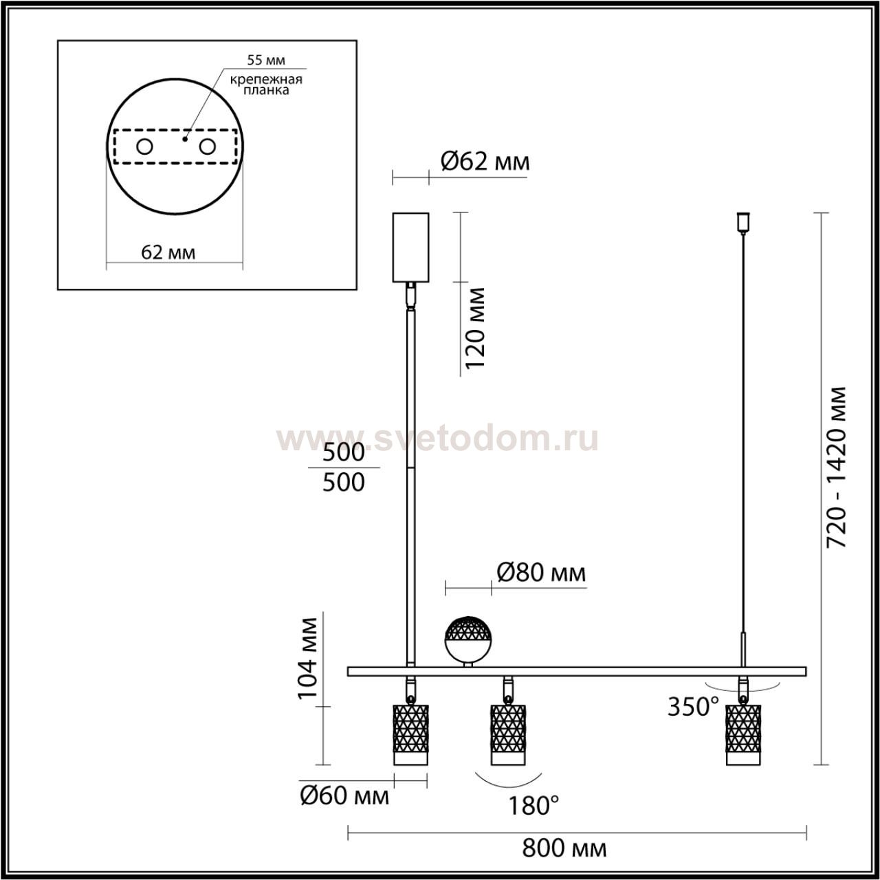 Данное значение указывает угол поворота, на который может поворачиваться светильник или угол рассеивания, на который светит лампа