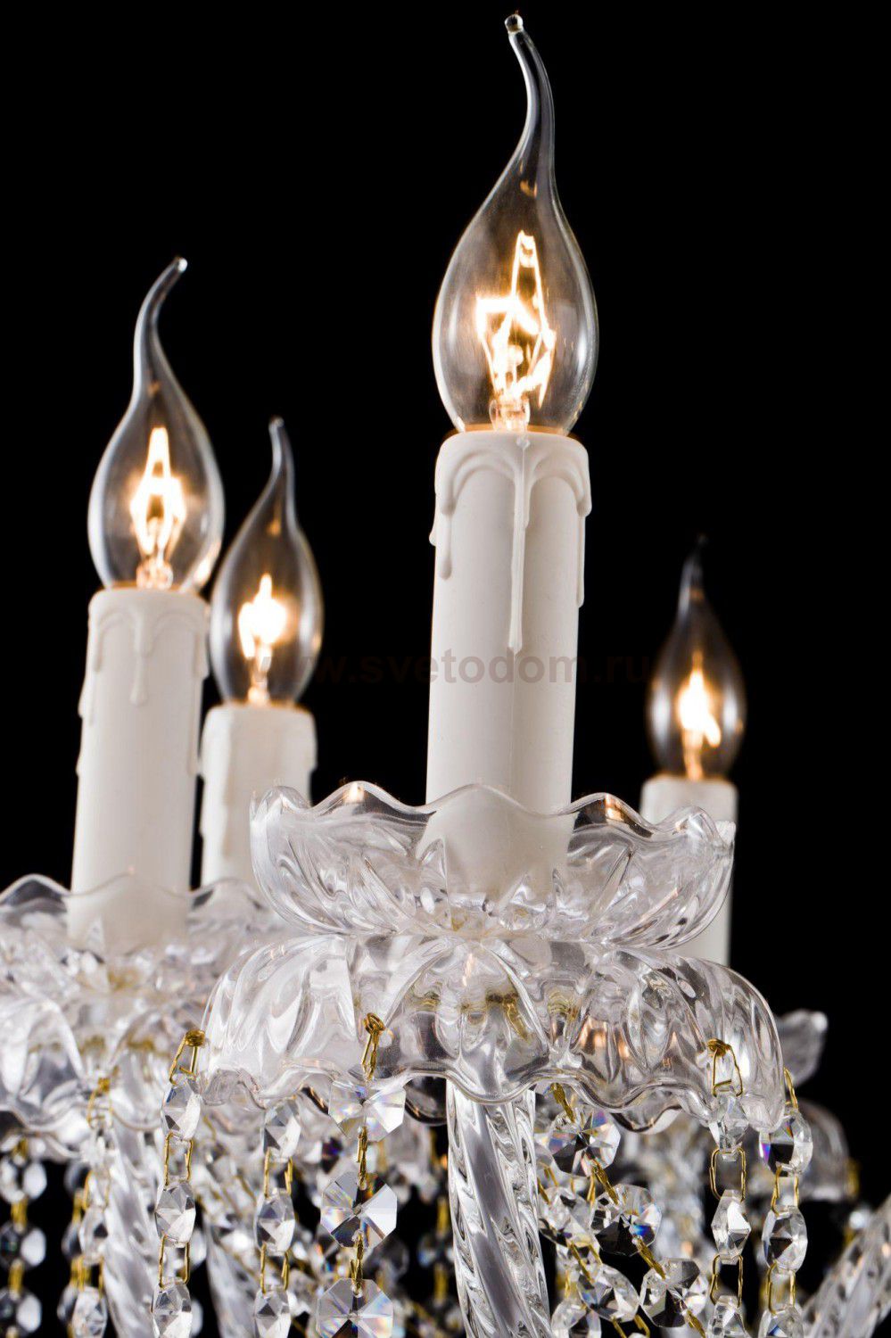 Изысканное сочетание в одной люстре, плафонов похожих на зажжённую свечу и подвесок похожих на лед Комментарий