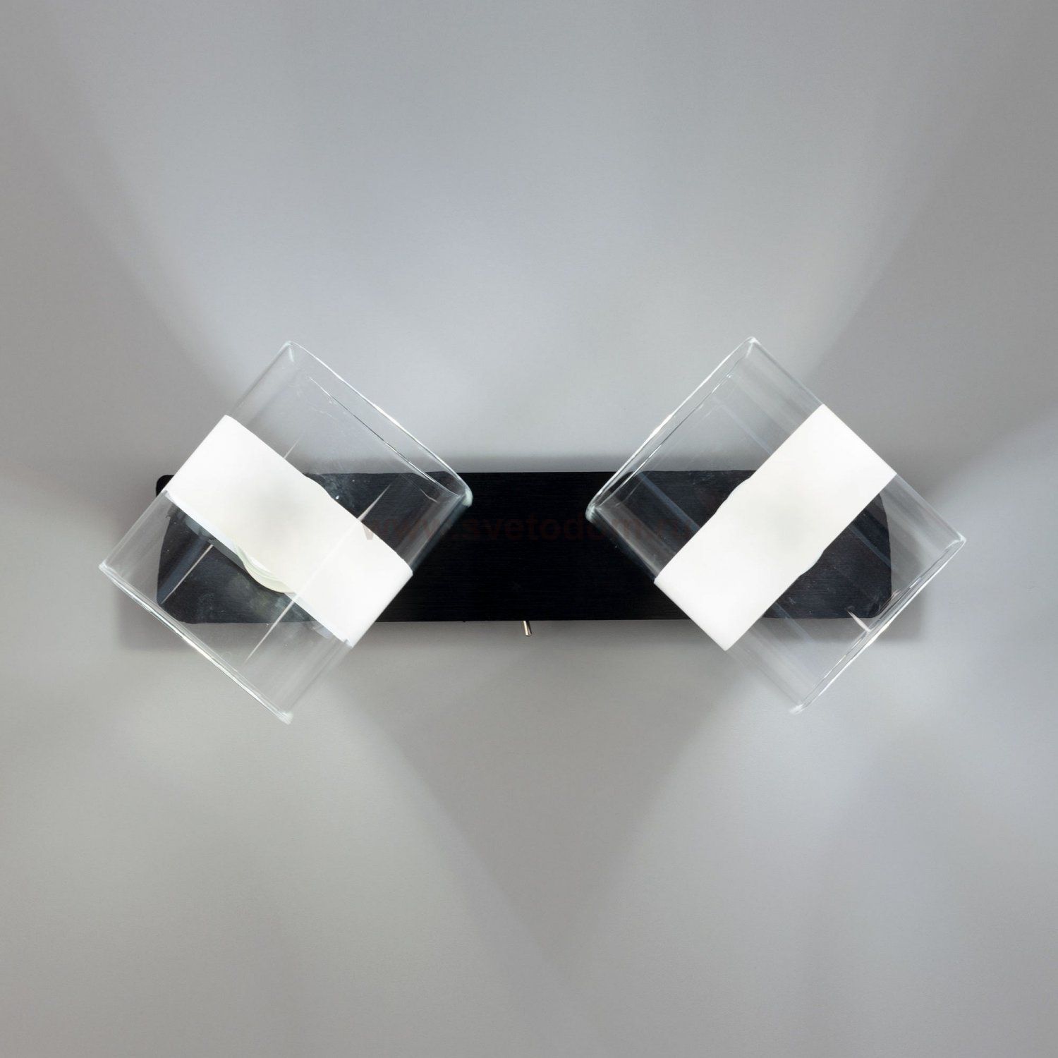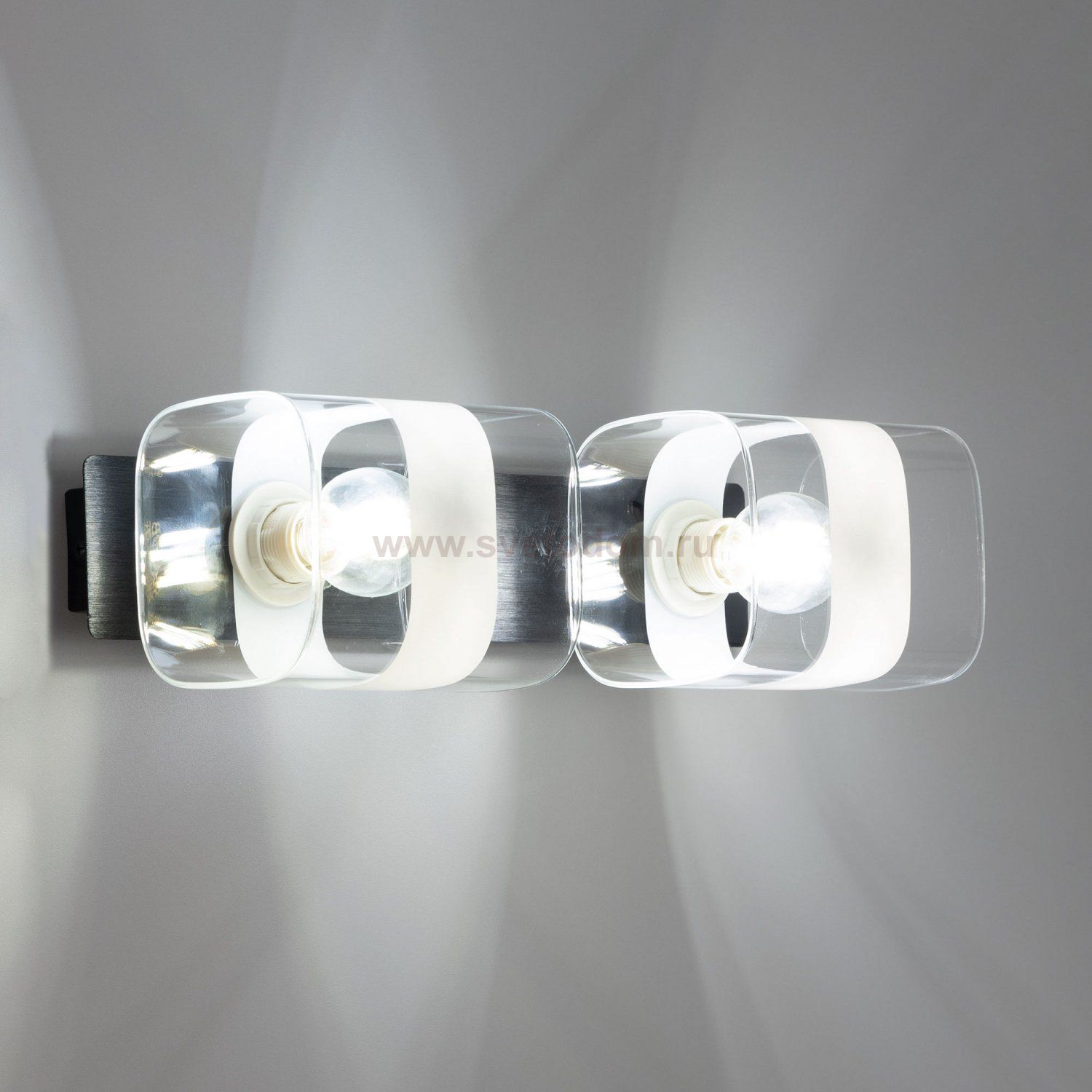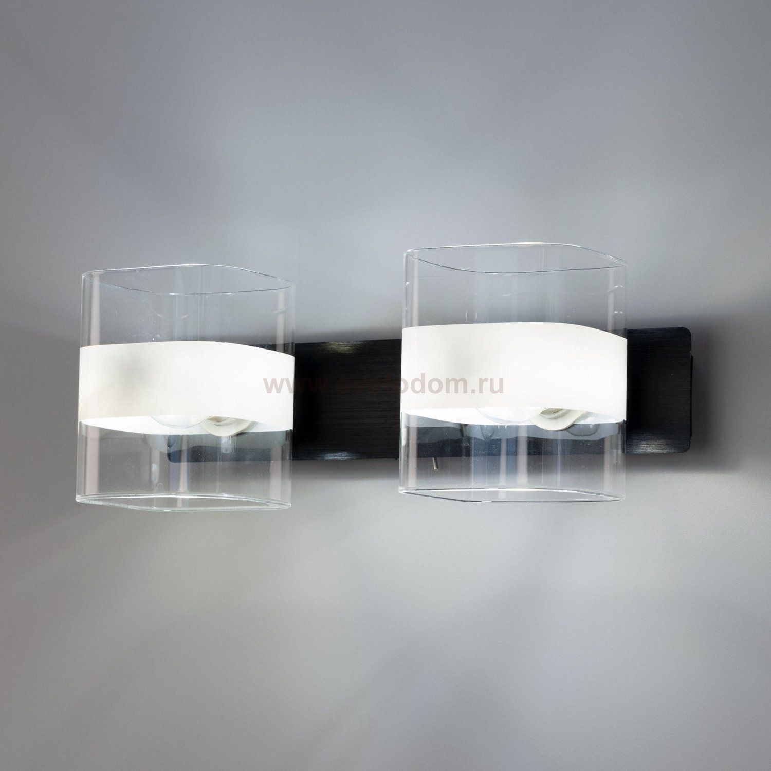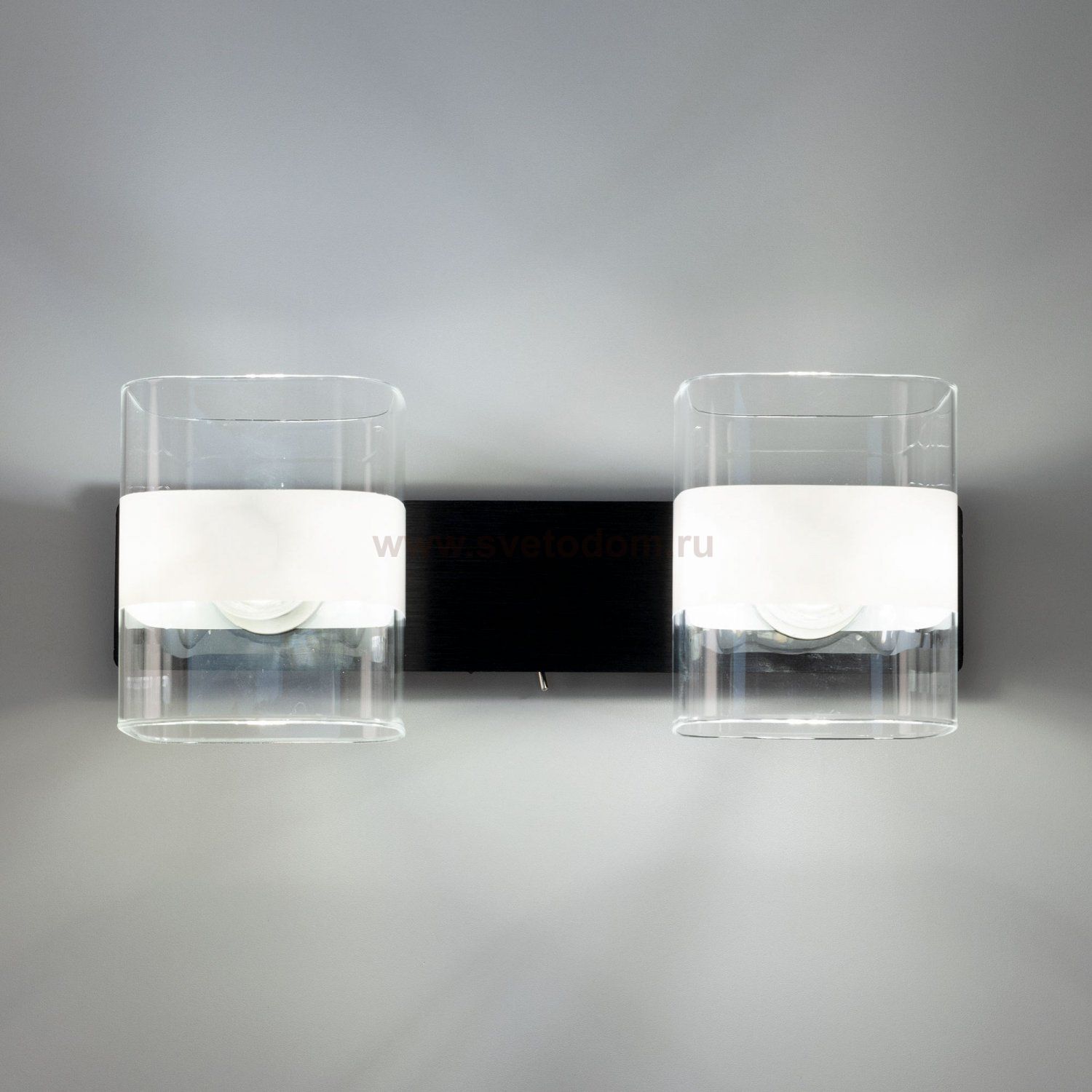 Настенный светильник в современном стиле Citilux Вирта CL139322. Основание металлическое, прямоугольной формы, цвет чёрный с декоративными хромированными элементами. На корпусе расположен удобный выключатель. Плафоны стеклянные, прозрачные с декоративной белой полосой. В светильнике используется 2 лампы с цоколем Е14, форма колбы шарик, максимальной мощностью для ламп накаливания 60 Вт. Модель можно размещать как на стене, так и на потолке, тип крепления – планка.