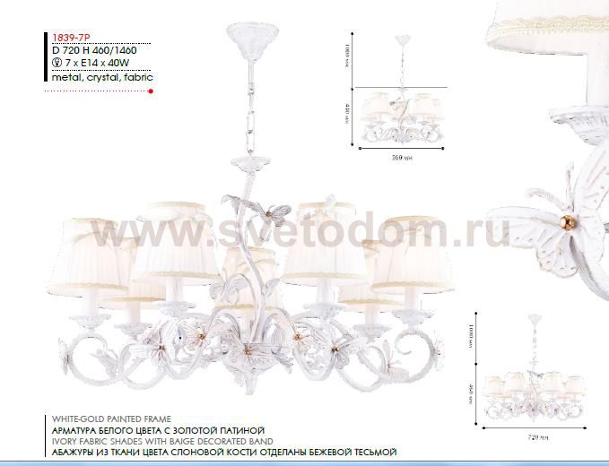 Выбирая модель светильника Favourite 1839-7P, обратите внимание, что каркас окрашен в белый цвет с золотой патиной, абажур из белой ткани украшен тесьмой с золотистым узором и белой атласной лентой, хрустальные подвески высшего качества. Дополнительная информация в характеристиках или по телефону. |