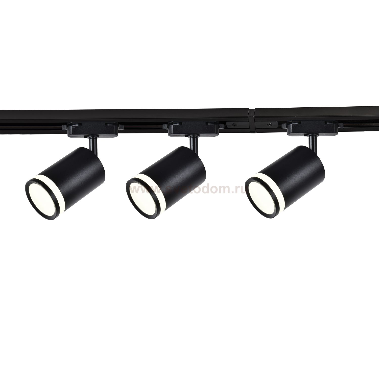 каркас черного цвета, в комплект трековой системы входят: 3 спота, шинопровод (2х1м) и коннектор, угол поворота до 90° Цвет декора