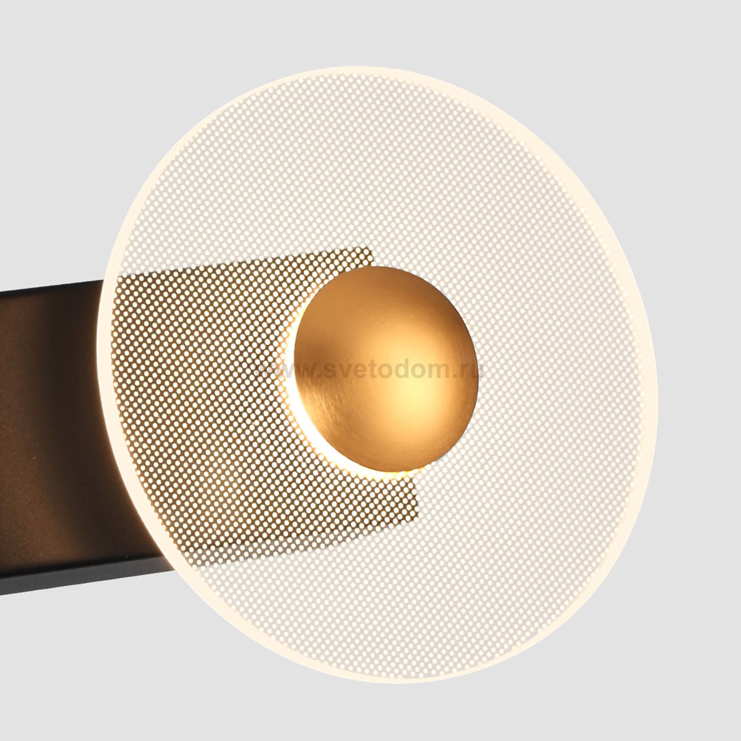 Настенный светильник с черным матовым каркасом, цилиндрическими плафонами из акрила с латунной сердцевиной. По внутреннему периметру дисков на стыке с Серия