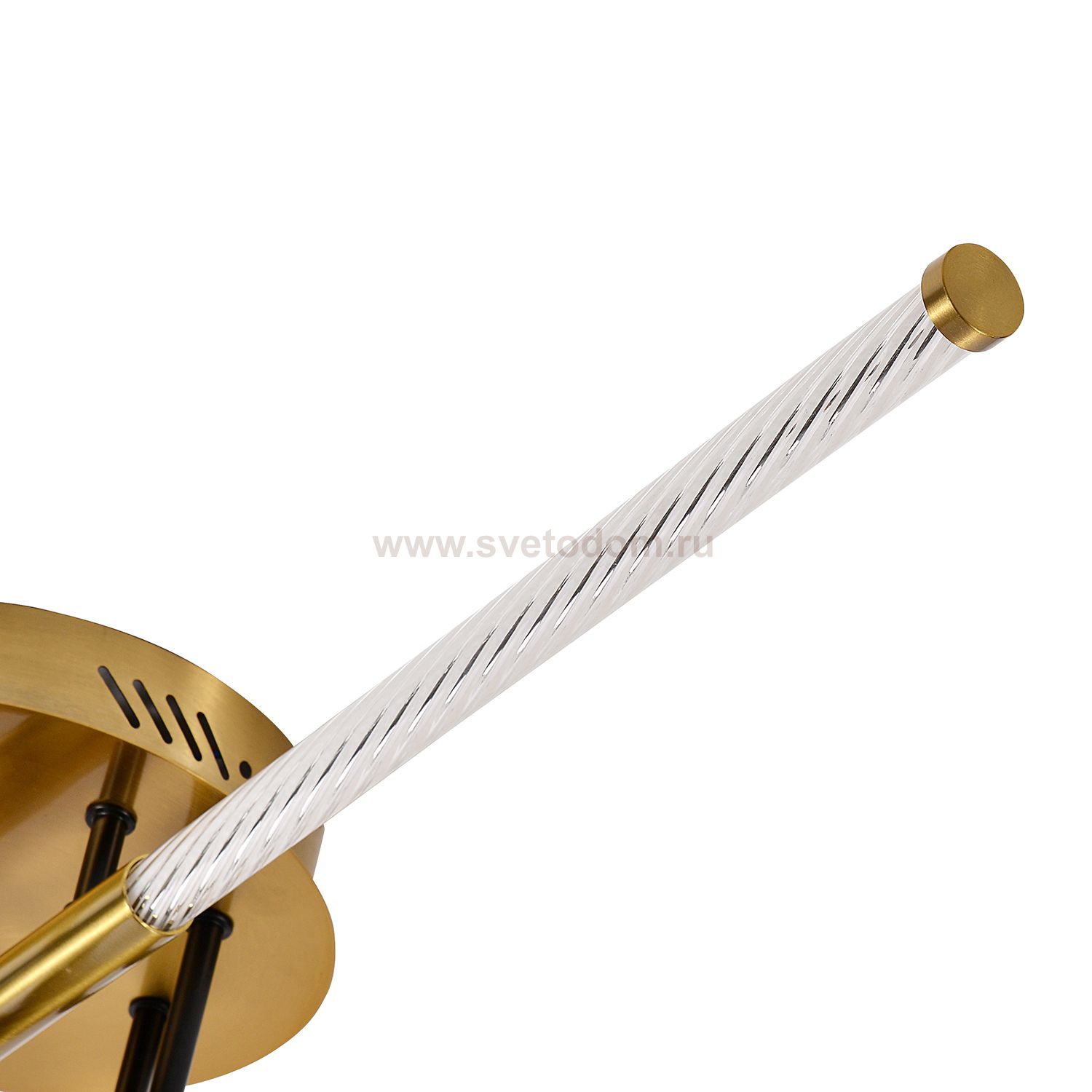 Потолочная люстра диаметром 70 см с композицией из акриловых трубок со спиральным узором, цвет латуни в оформлении каркаса, LED-модули Серия