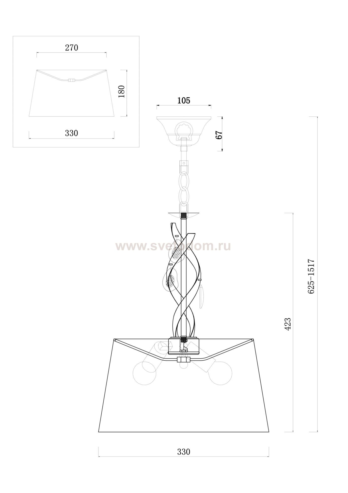 270 Высота абажура, мм