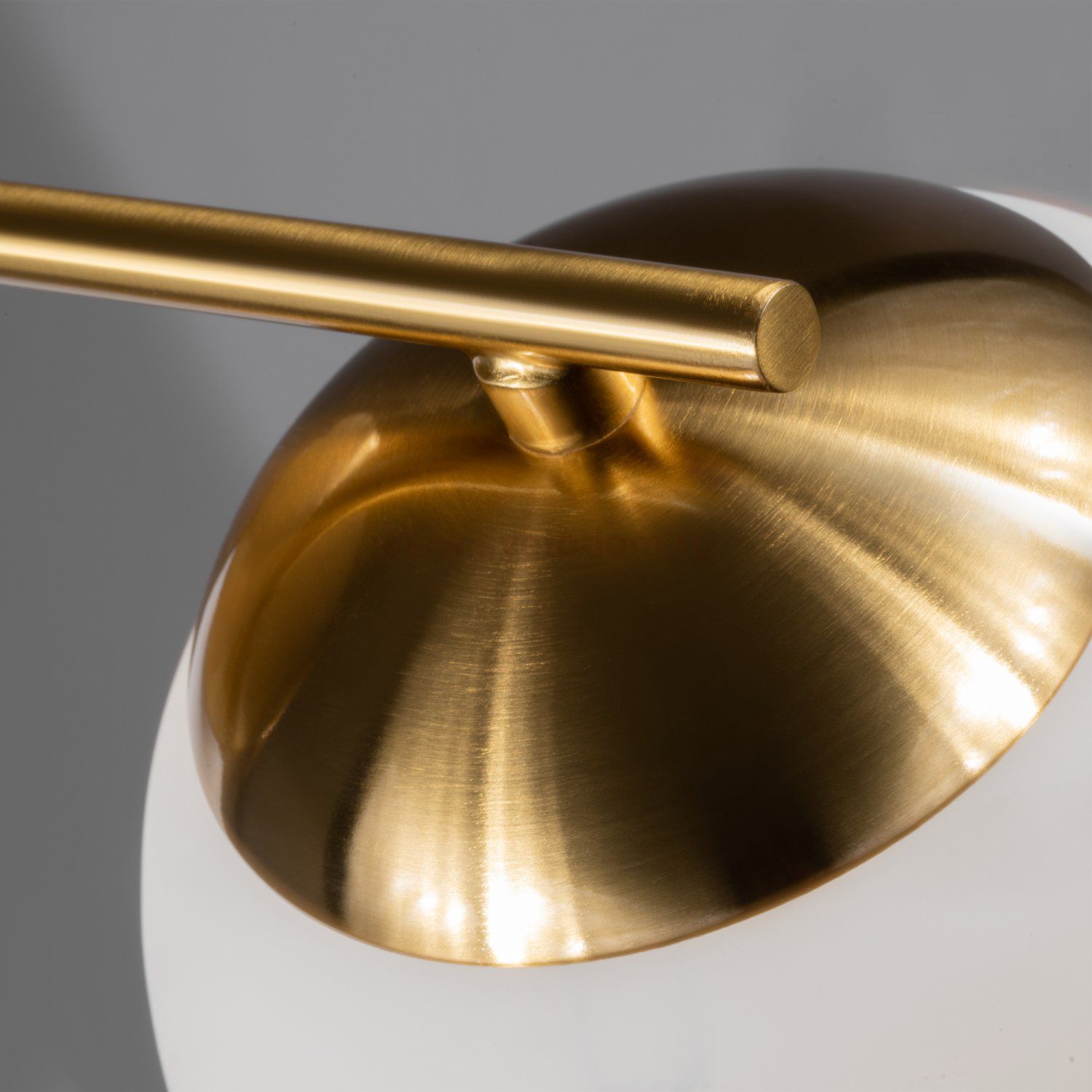 Арматура - металл, цвет - латунь. Мраморные черные элементы в основании. Плафоны-сферы из белого матового стекла с металлической апликацией у основания крепления в цвет арматуры. Сменямый источник света - лампы с цоколем Е27.