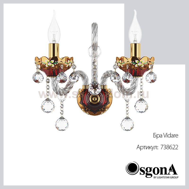 Классическое сочетание красного и золотого, цветочная роспись, обилие волнистых линий в дизайне бра из коллекции Vidare намекают на богатый дворянский стиль. Его крупные хрустальные подвески с частой огранкой и стеклянные закрученные рожки преломляют лучи света, усиливая ореол сияния вокруг роскошного Vidare от Osgona.