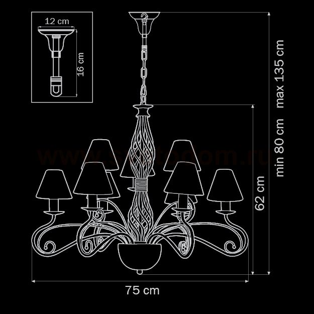 Максимальная потребляемая мощность лампы, которую можно использовать в люстре.
