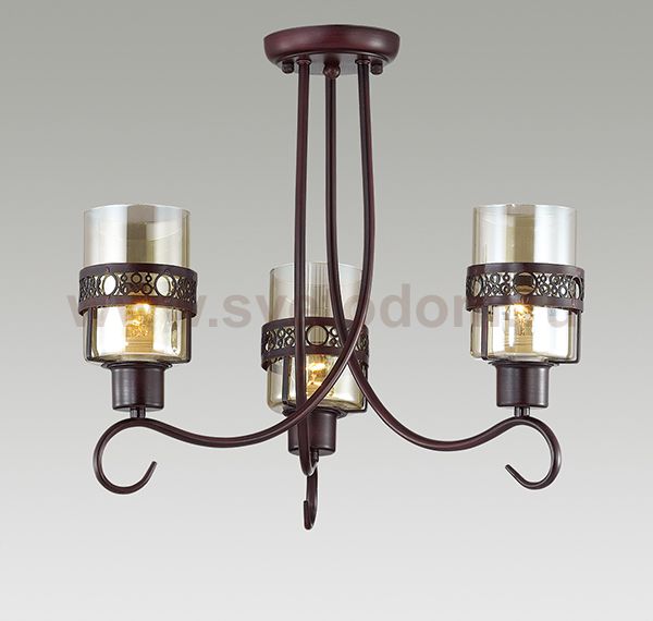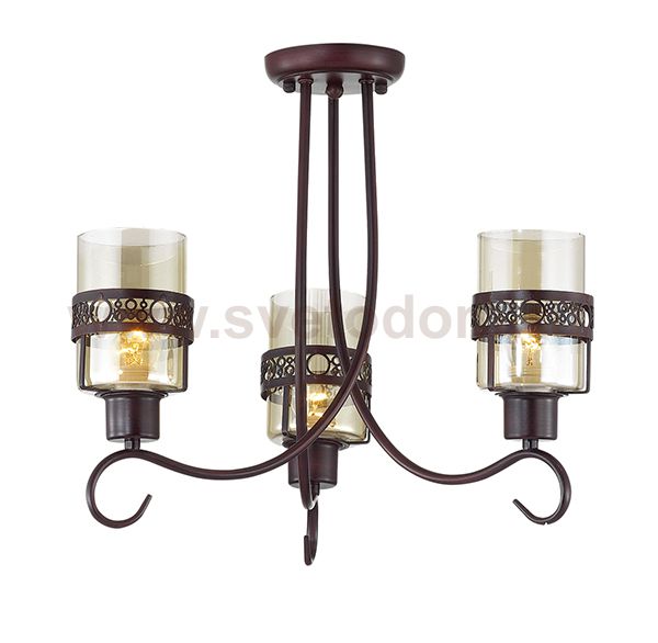 Люстра потолочная 3098/3C серии Vitelia оформлена в классическом стиле. Люстра состоит из прозрачных стеклянных плафонов с ажурным металлическим ободком и оригинальной арматуры приятного кофейного цвета. В данной модели соединились необычные переплетения каркаса в сочетании с классикой плафонов. Цоколь E27. Мощность 3x40W. Нет ламп в комплекте.