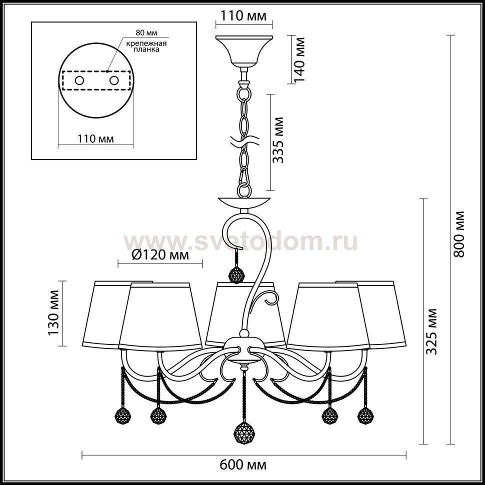 Арматура, декор: металл, хрусталь; абажур: ткань Материал плафона