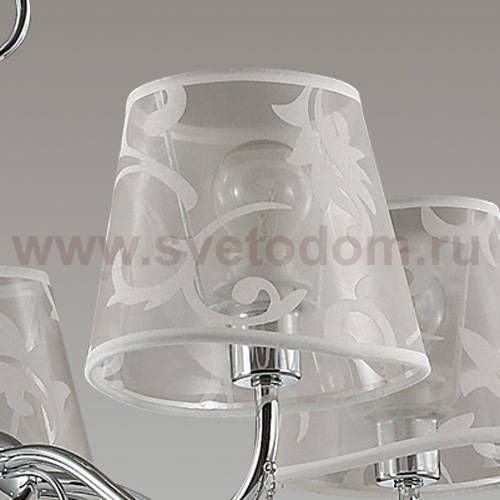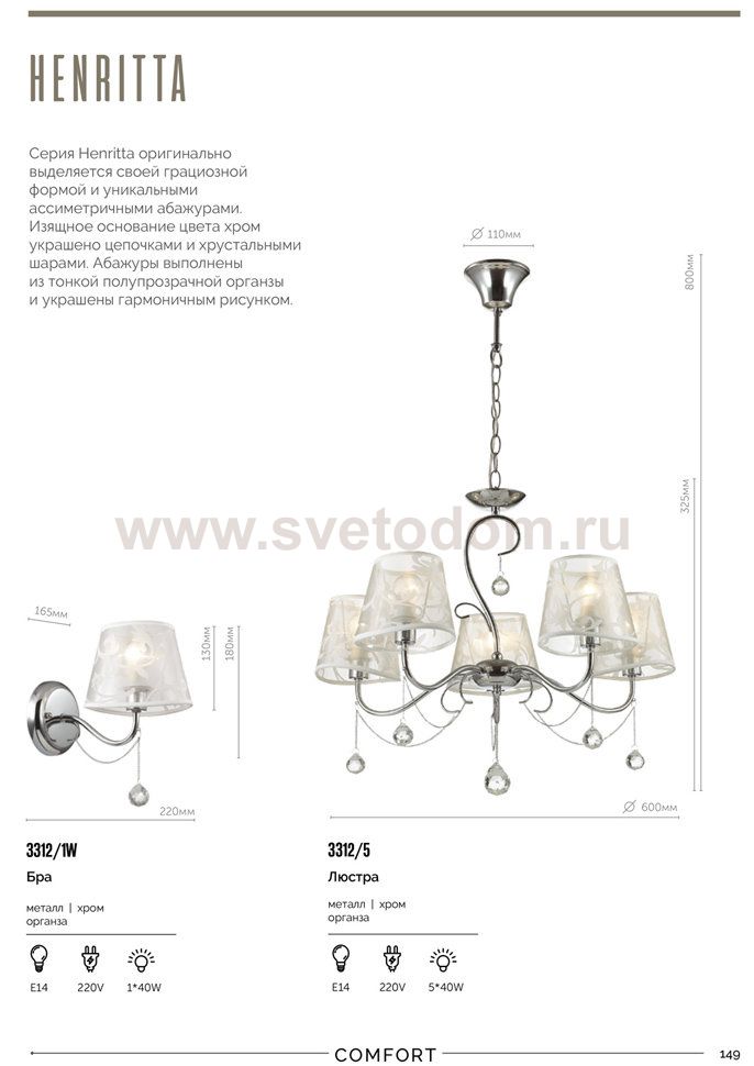 Линия Henritta оригинально выделяется своим изящным хромированным основанием и уникальными ассиметричными полупрозрачными абажурами с утонченным орнаментом.