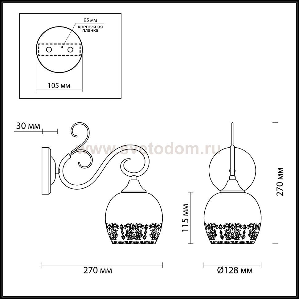 Арматура, декор: металл; плафон: стекло Материал плафона
