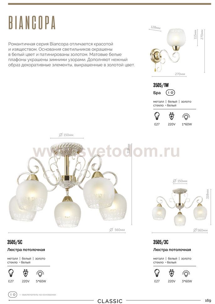 3505/5C COMFI LN18 060 белый, золотая патина Люстра потолочная E27 5*60W 220V BIANCOPA Штрих-код