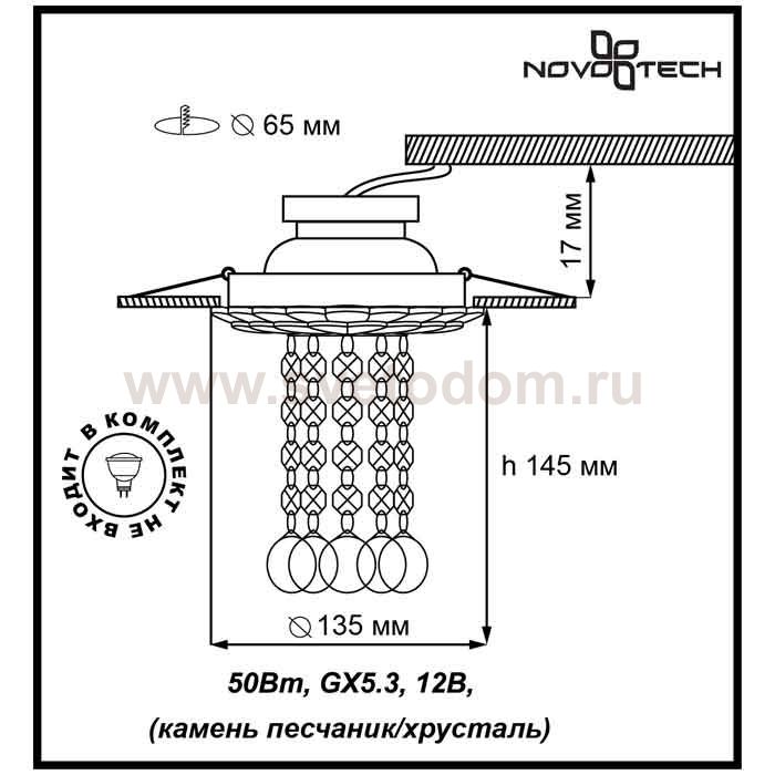 Декоративный встраиваемый светильник модели Novotech 370106 из серии PATTERN отличается следующим качеством: Корпус светильника произведен из натурального камня песчаника. Его главные преимущества - долговечность, уникальные экологические и бактерицидные качества, чистота цвета, однородность структуры, малое влагопоглощение. Подвески сделаны из хрусталя. Он обладает высоким показателем плотности, прозрачности и блеска. Благодаря содержанию свинца (не менее 30%) и определённому подбору углов, образуемых гранями, изделия из хрусталя отличаются необыкновенно яркой, многоцветной игрой света, чарующей магией красоты, совершенства и роскоши.