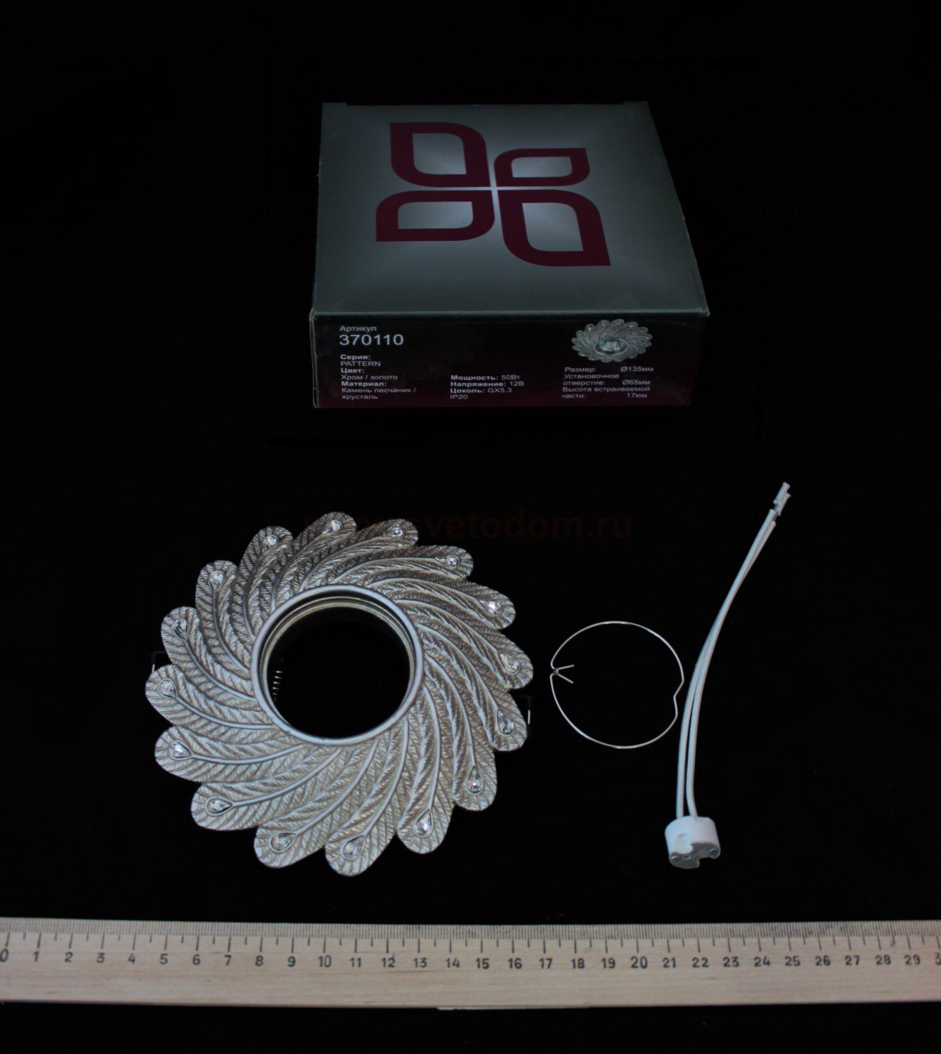Декоративный встраиваемый светильник модели Novotech 370110 из серии PATTERN отличается следующим качеством: Корпус светильника произведён из натурального камня песчаника. Его главные преимущества - долговечность, уникальные экологические и бактерицидные качества, чистота цвета, однородность структуры, малое влагопоглощение. Декоративные стразы сделаны из хрусталя. Он обладает высоким показателем плотности, прозрачности и блеска. Благодаря содержанию свинца (не менее 30%) и определённому подбору углов, образуемых гранями, изделия из хрусталя отличаются необыкновенно яркой, многоцветной игрой света, чарующей магией красоты, совершенства и роскоши.
