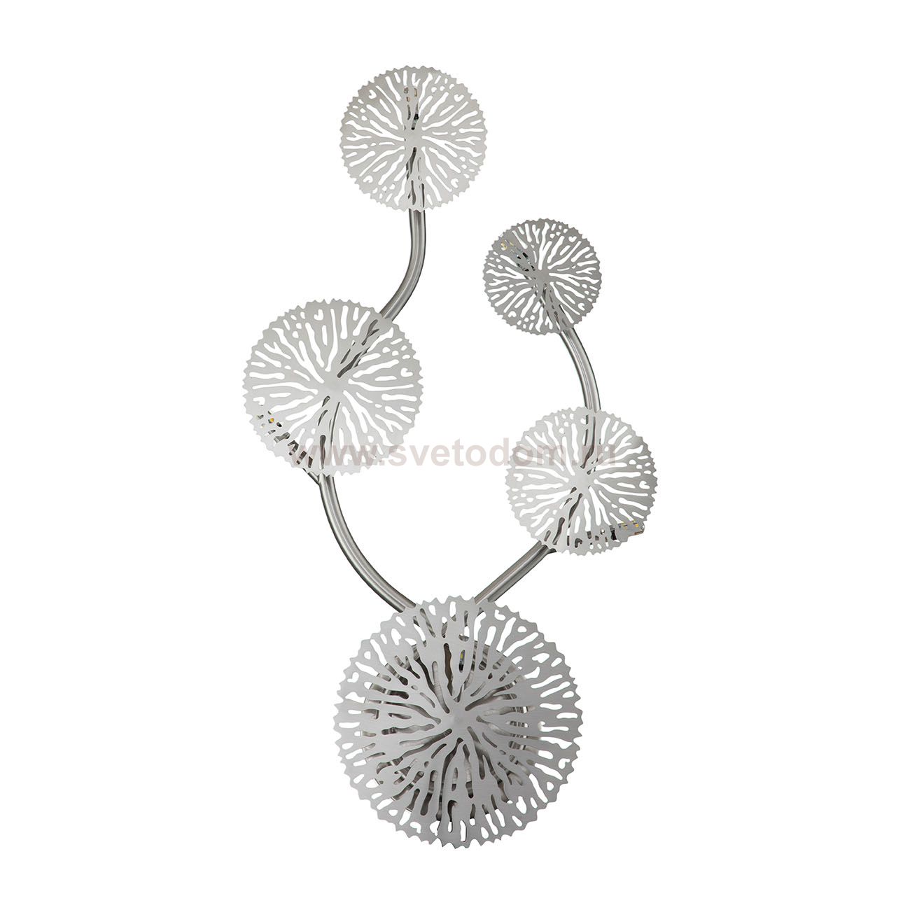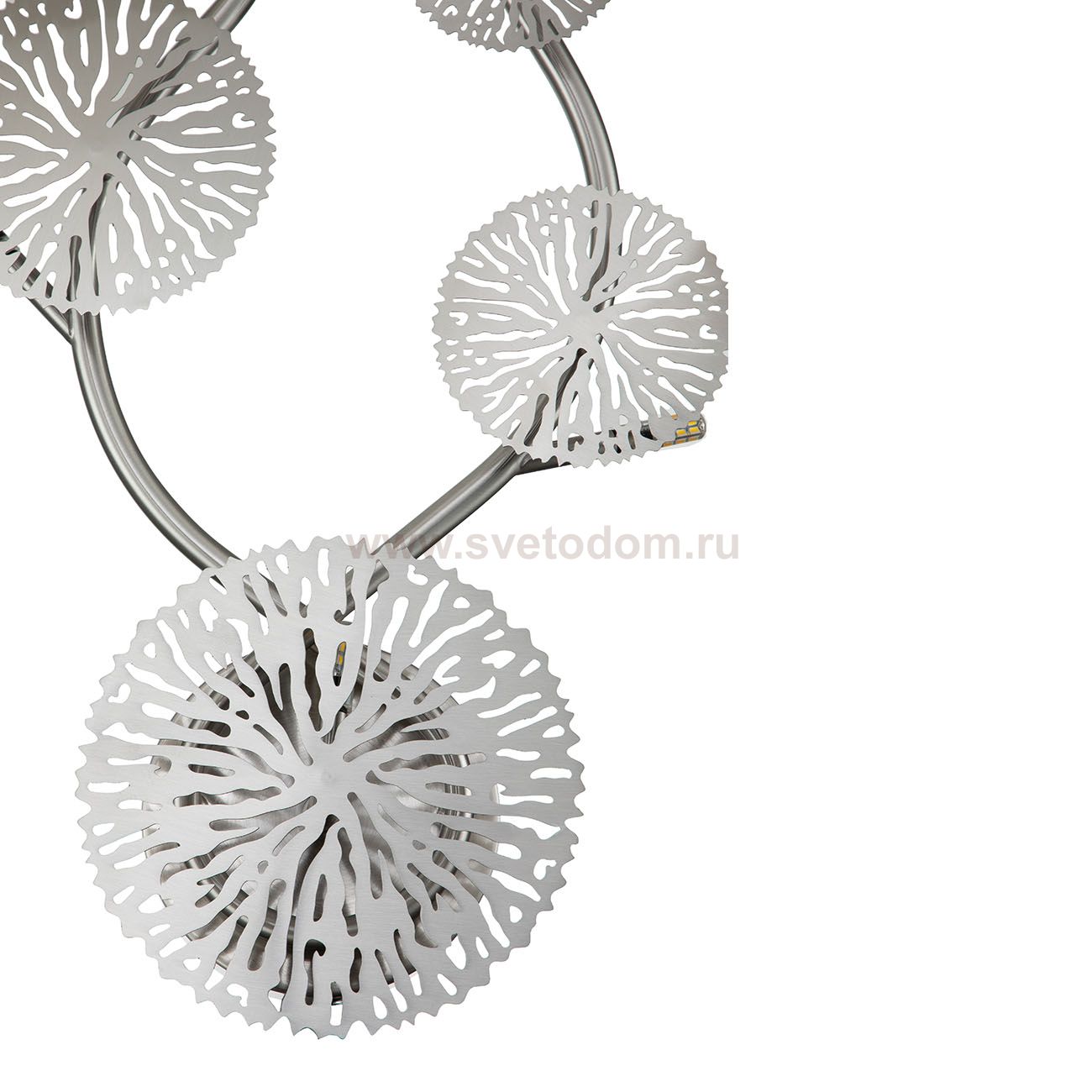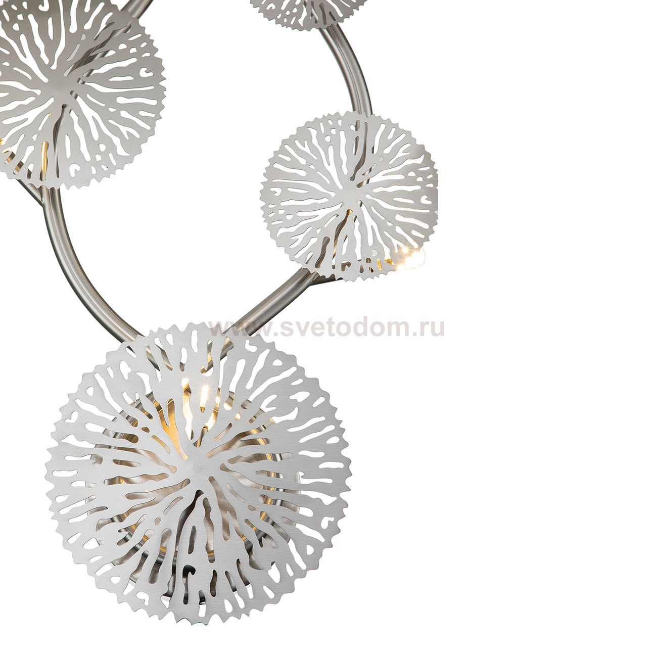Оригинальная Серия SOLE перенесет нас в мир творческих фантазий на тему главных источников света на земле. Круглые декоративные орнаменты различных фактур, размеров и цветов символизируют солнце и луну как самых древних и почитаемых символов всех времен и народов. Столь яркая и харизматичная коллекция рождена, чтобы наполнить ваш дом живительным теплом и нескончаемой энергией. Размер 260*65*500 Мощность G4 5Wх5 Цвет НИКЕЛЬ Материал МЕТАЛЛ
