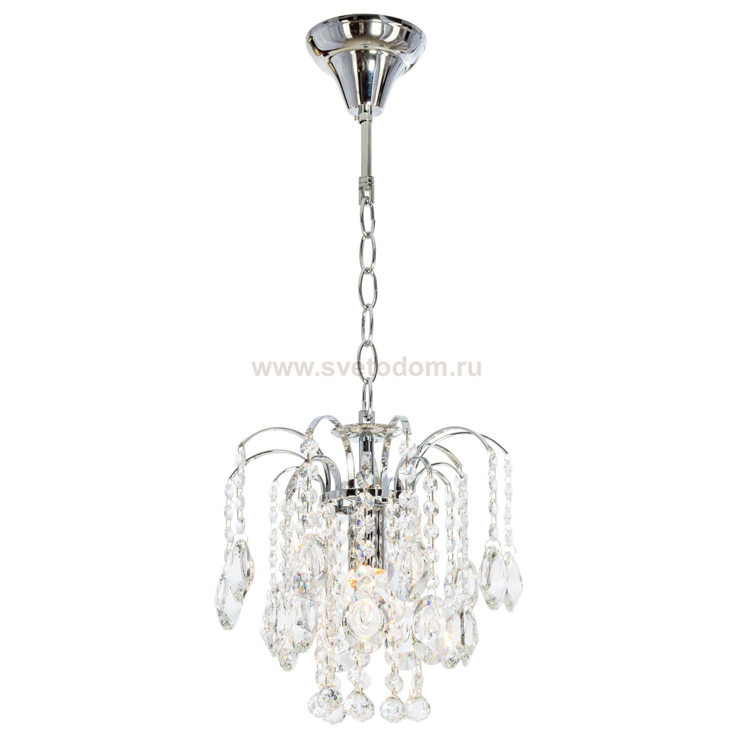 Люстра с хрусталем 2826/1CR+WT от бренда ЭкономСвет. Каркас выполнен из материала металл, цвет хром. Цоколь E27 рассчитан на лампы максимальной мощности до 60 Вт, а максимальная площадь освещения составит до 2 м?.