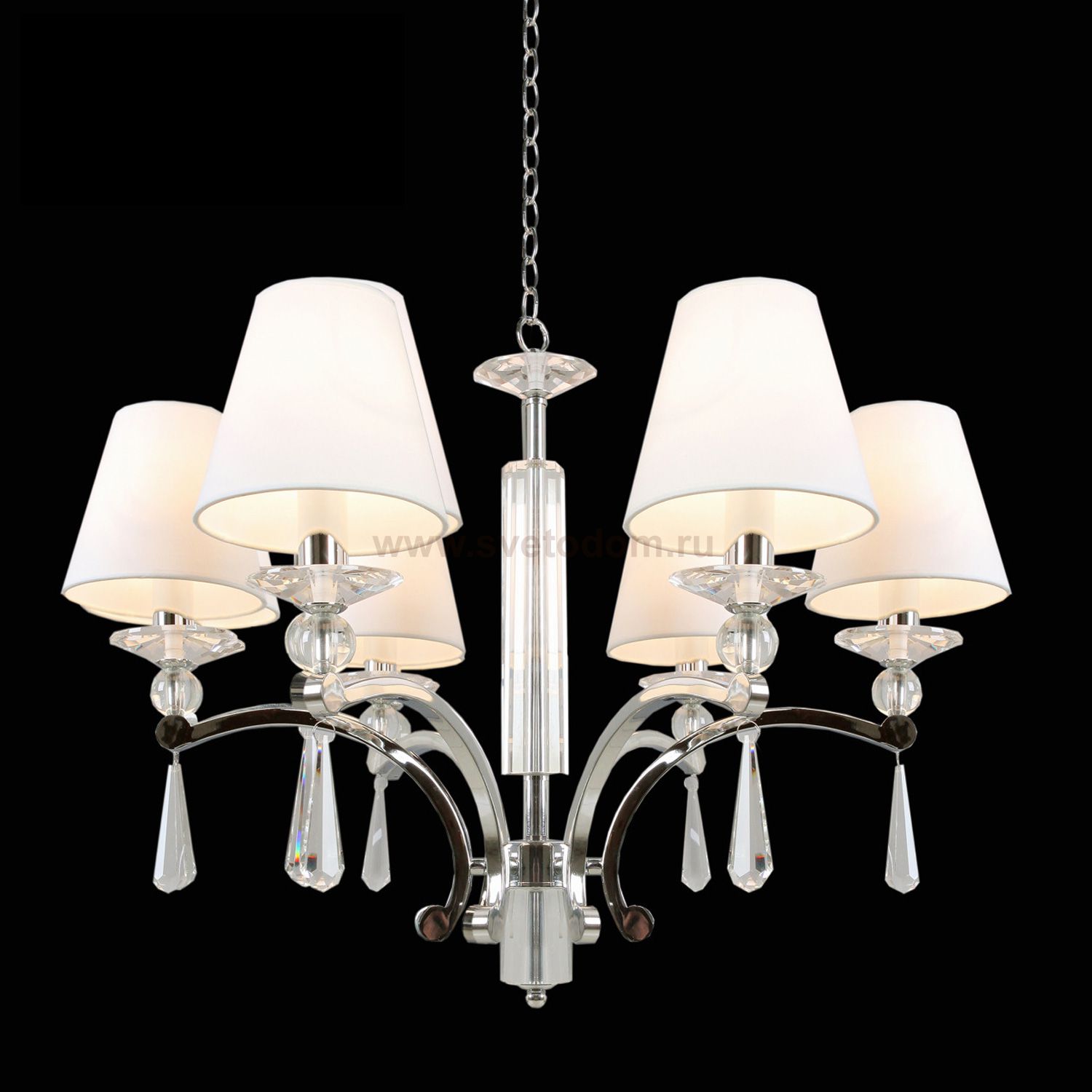 Металлическое основание цвета хрома, текстильные абажуры, декоративные элементы из хрусталя Материал плафона