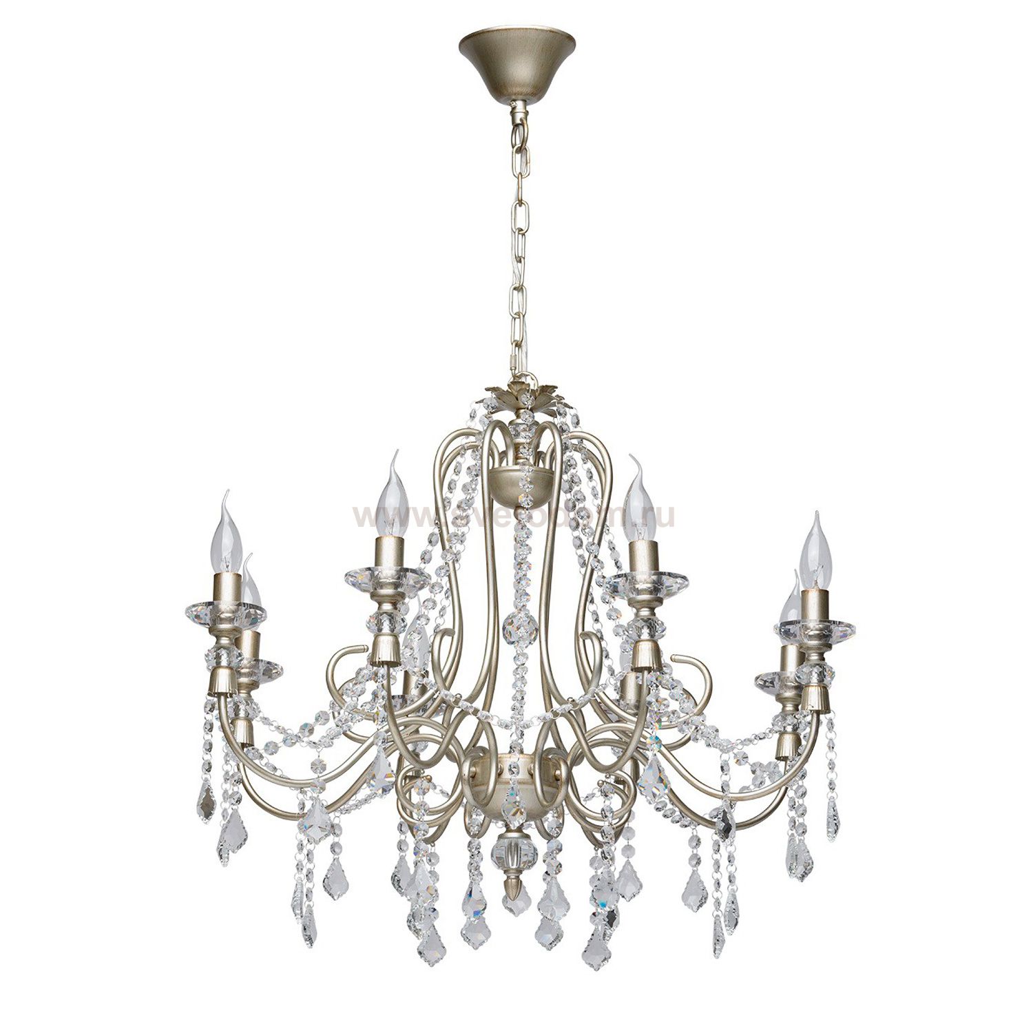 Художественные подвесы из хрусталя, грациозные изгибы рожков, сияние света… Люстра из коллекции «Селена» восхищает своей утонченной и вместе с тем величественной красотой. Основание светильника выполнено из металла, окрашенного в цвет античного серебра с эффектом патины – одно из самых благородных цветовых сочетаний. Искусственная состаренность придает люстре некоторую парадность и античную торжественность. Помимо интересного цветового решения, основание привлекает внимание необычными изогнутыми рожками, образующими в центре композиции своеобразную корону в стиле Марии-Терезии. Декоративные элементы из хрусталя порождают многогранную, яркую игру света. Во включенном виде люстра приобретает дополнительный антикварный шик, а хрустальные капли, мягко струящиеся вдоль витиеватого основания, придают светильнику поистине царский блеск и величие. Площадь освещения порядка 16 кв.м.