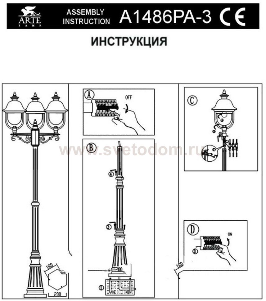 Купить уличный светильник Arte lamp A1486PA-3BK, представленный в нашем каталоге, можно с помощью онлайн-формы для заказа. Чтобы задать имеющиеся вопросы, звоните нам по указанным телефонам.