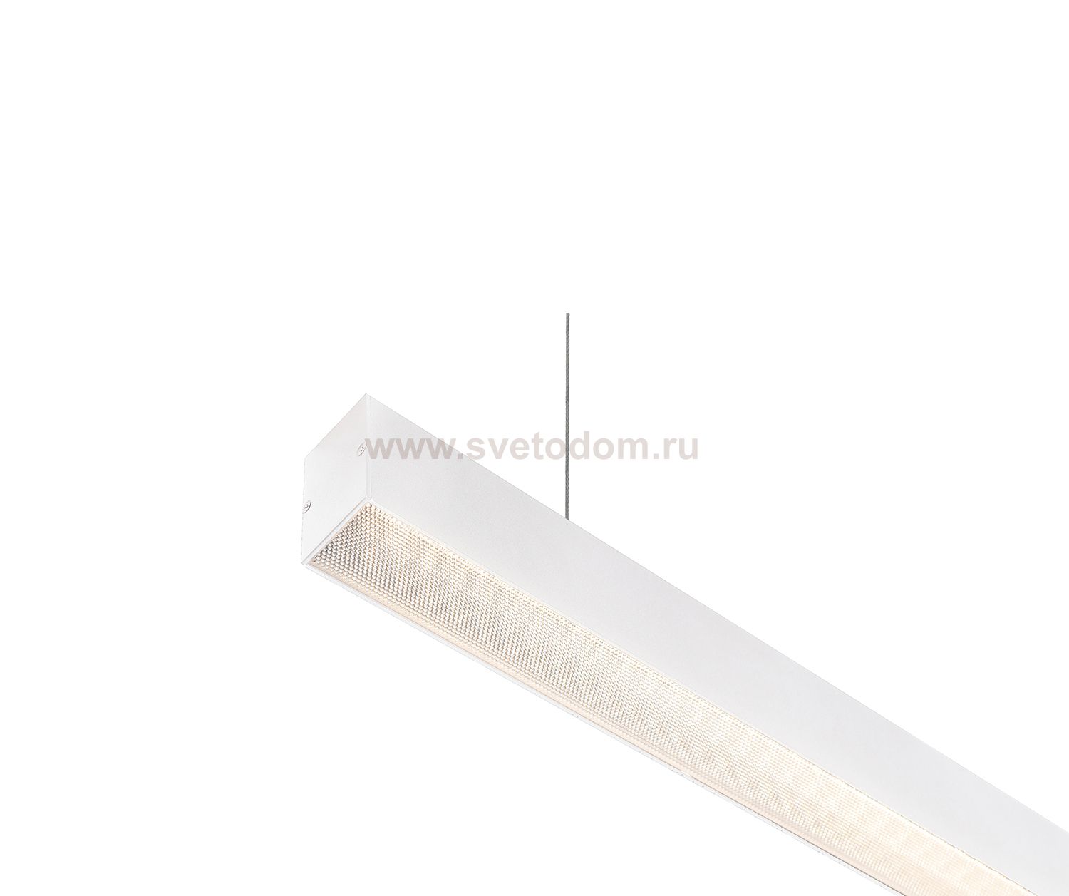 Серия линейных светильников с рассеивателем из призматического поликарбоната с великолепными светопропускными показателями. При этом призматический рассеиватель скрывает диодную линейку так же хорошо, как и классический рассеиватель. Все модели серии имеют универсальный комплект креплений и могут быть установлены как подвесным, так и накладным способом. Благодаря крепежными элементам не требуется сверление корпуса. Данные модели предназначены для установки в помещениях с высокими и средней высоты потолками. Легко и незаметно вписываются в любой дизайн. Идеально подходят для офисов, торговых помещений и общественных зон. Ассортимент серии включает в себя большое количество вариантов длин от 1250 до 3000 мм.Подвесы в комплекте (2 штуки).