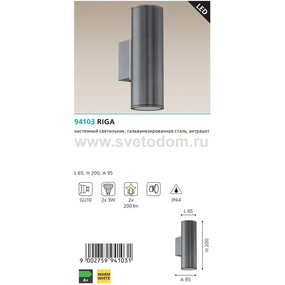 Уличный настенный светильник светодиодный RIGA Комментарий