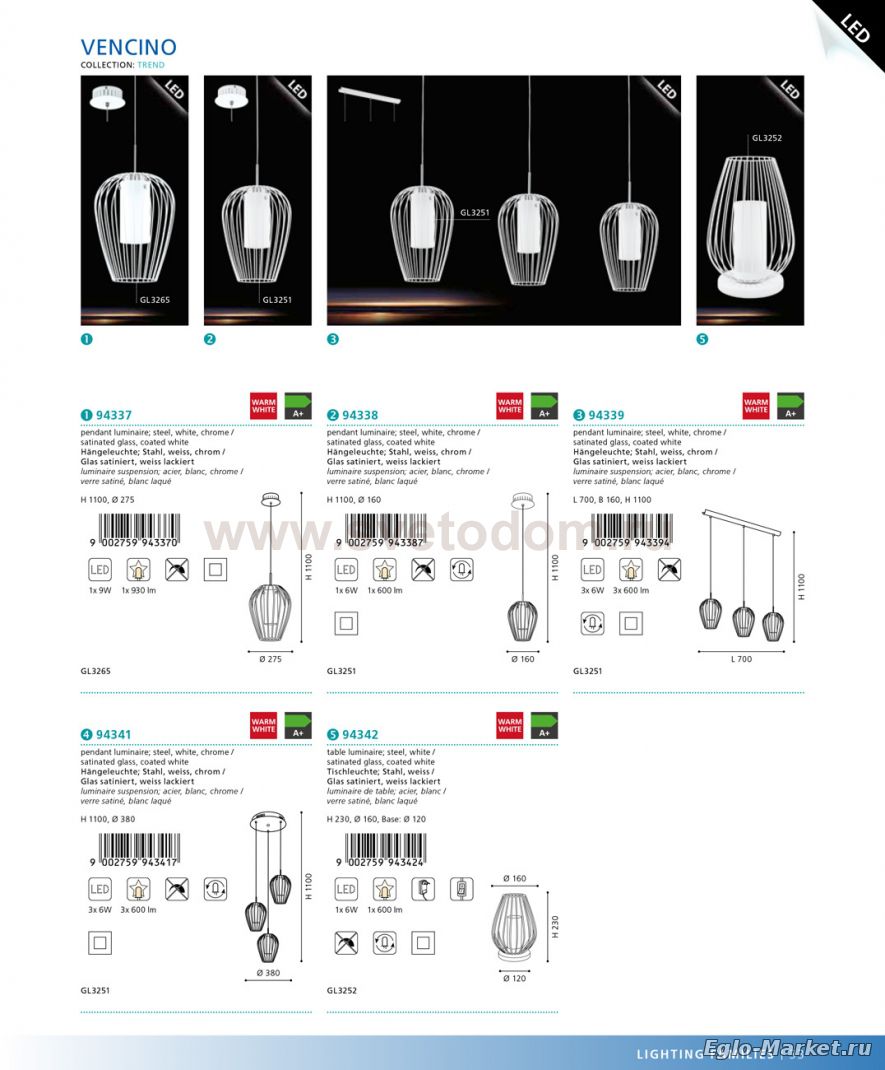 GL3251 Отзывы Светильник подвесной Eglo 94338 VENCINOПока нет отзывов об этом товаре, напишите и он обязательно появится после модерации! Оставить свой отзывДругие товары магазина Фото