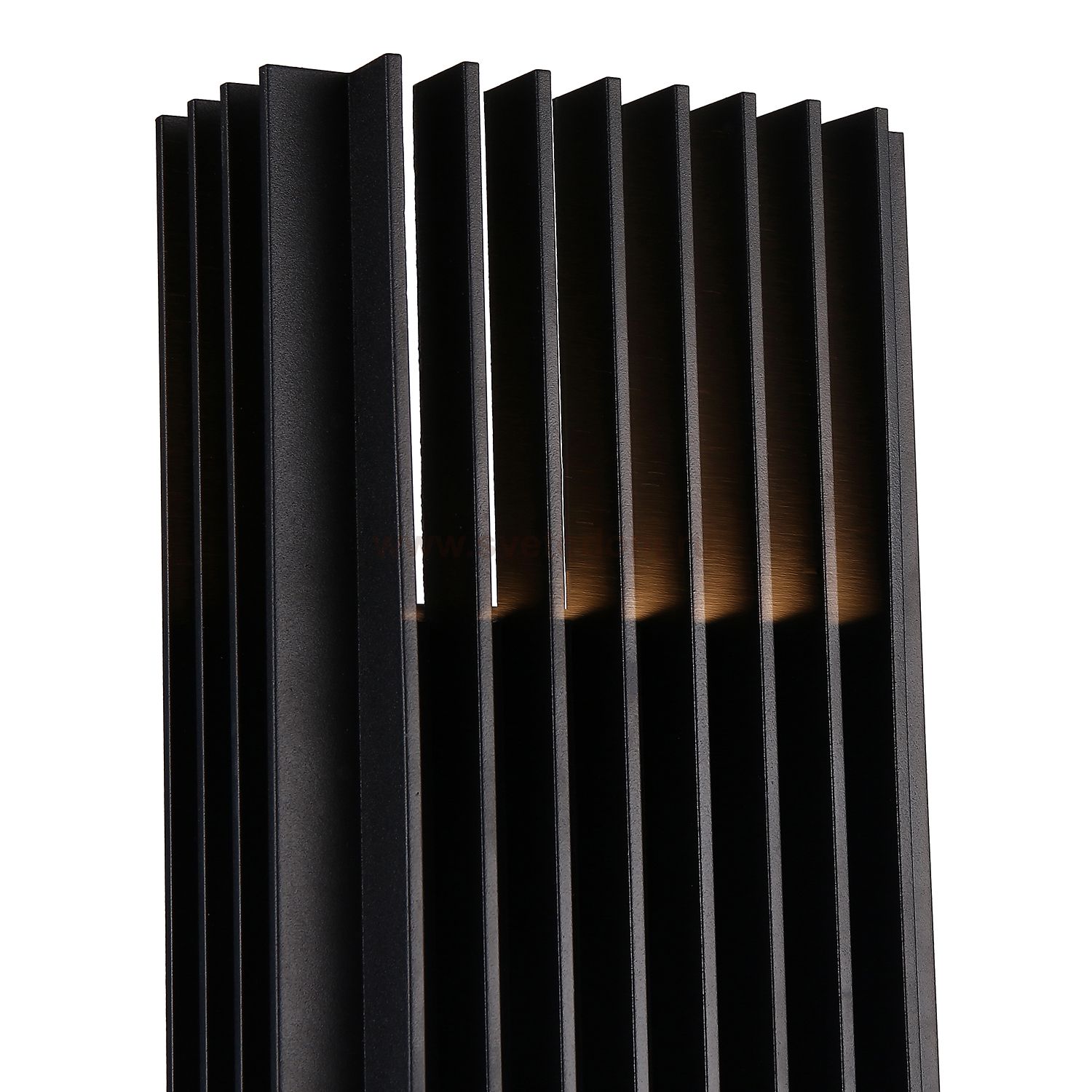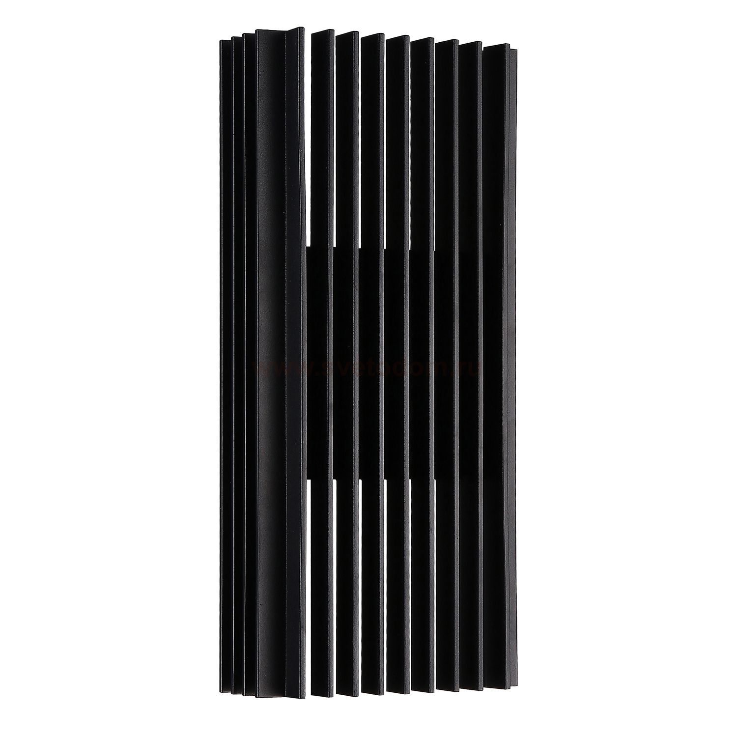 Настенный светильник, представляет собой конструкцию из широких плоских металлических пластин, прикрепленных к корпусу, выполнен в черном матовом цвет Серия