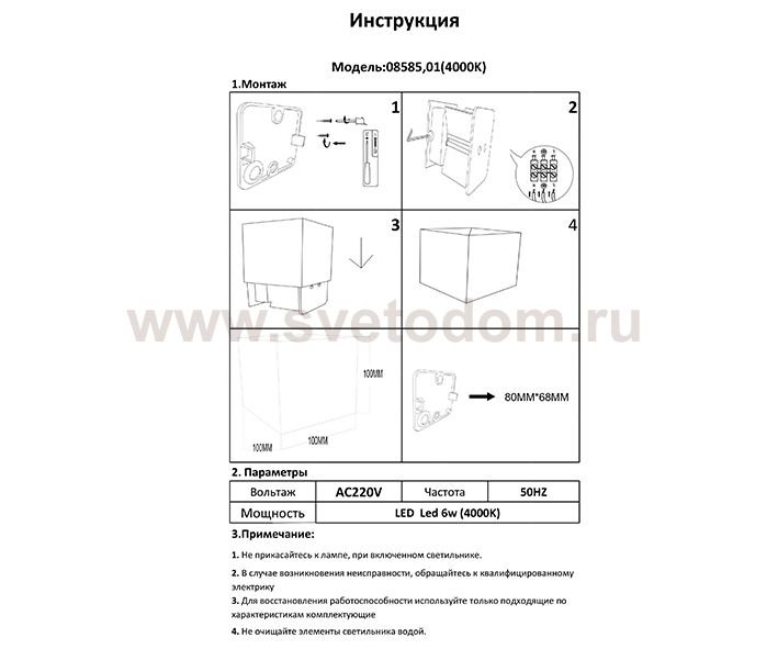 08585,01(4000K) Светильник Куб белый Led 6W Штрих-код
