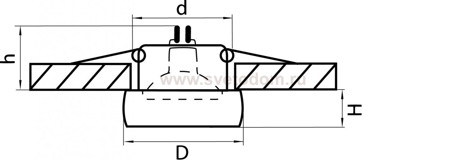 Данный размер указывает какое отверстие необходимо сделать для правильного монтажа. Зачастую светильники выбирают после ремонта и сделанных монтажных отверстий, тогда подбор осуществляется строго в размер +/- 2-5мм.