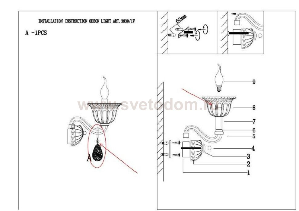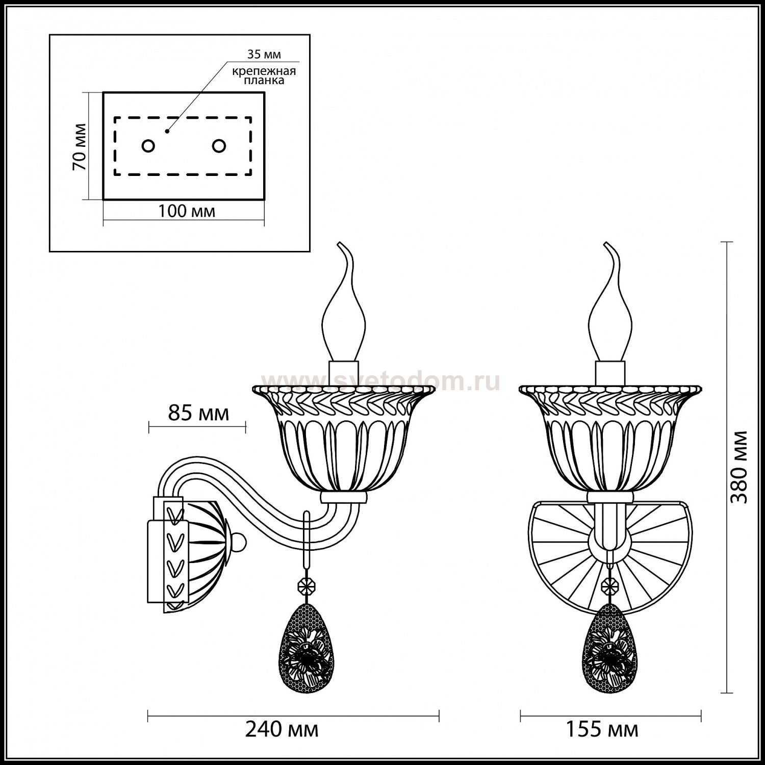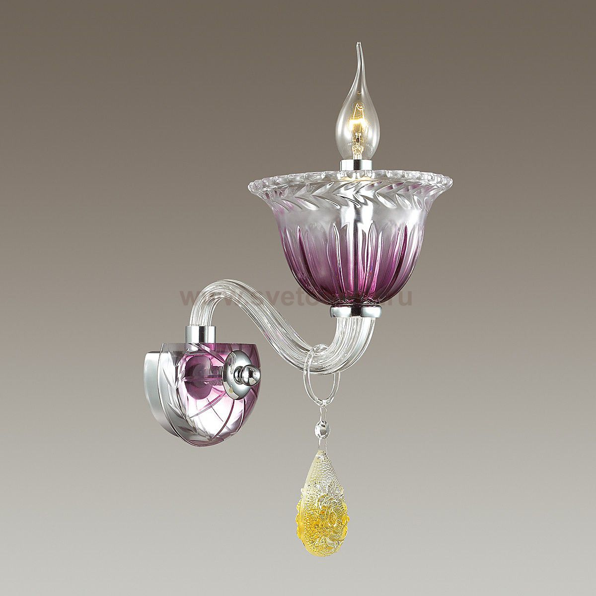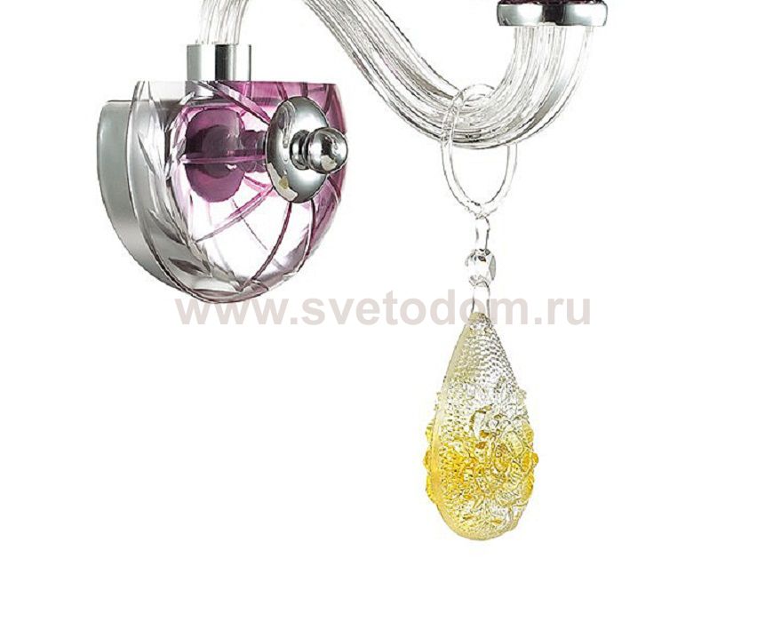 Храктерная особенность артикула 3930/1W: Необычайно красивое и нежное бра 3930/1W серии Olica оформлено в классическом стиле. Бра украшает дорогое выдувное стекло с декоративным орнаментом. Но основной изюминкой и украшением этого стекла является цветовое сочетание прозрачного и насыщенного темно-лилового, два чистых и контрастных цвета, плавно переходящих из одного в другой, и идеально гармонирующих друг с другом. Данную нежную и свежую композицию оживляют крупные хрустальные подвески с теплым янтарным оттенком, красиво украшающие низ люстры. Цоколь E14. Мощность 8*40W. Нет ламп в комплекте.