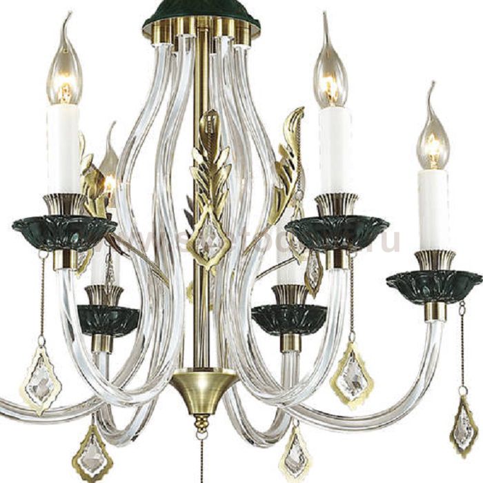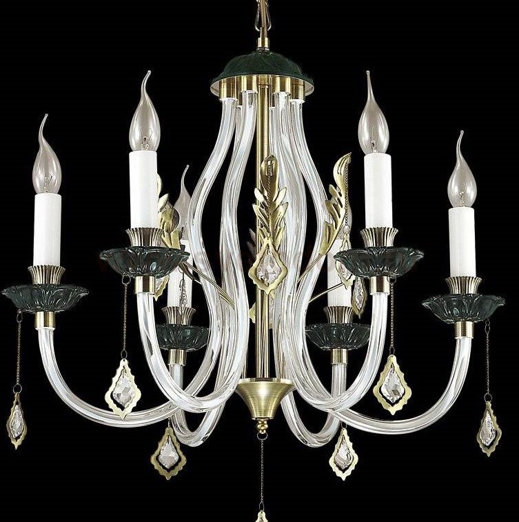 Строгий дизайн люстры 3985 / 6 линии Arizzi, красивое прозрачное стекло и неброский темно - зеленый металлический декор светильника создают образ аристократической изысканности и элегантности. Такой светильник станет великолепным дополнением классического интерьера. Цоколь E14. Мощность 6*40W. Нет ламп в комплекте.
