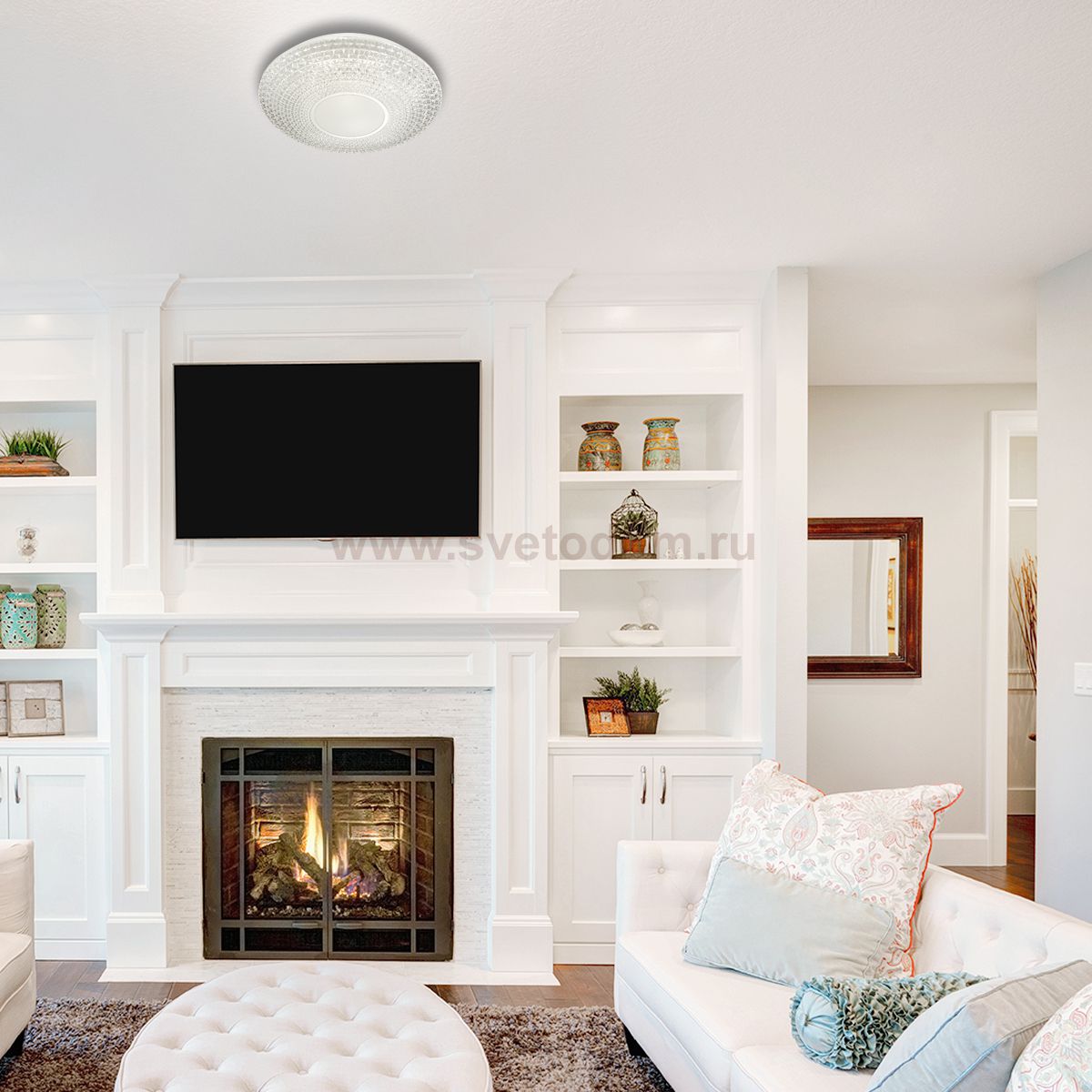 Светильник 2048//DL линии VISMA состоит из металлического основания (базы) и пластикового рассеивателя. Материал рассеивателя - высококачественный акрил, обеспечивающий светильнику равномерное рассеивание и хорошее светопропускание. Форма плафона: круглая, декорирована центральной вставкой с кантом цвета хром и рельефной структурой "под хрусталь", которая придает включенному светильнику красивый эффект переливания. Степень защиты IP43 позволяет использовать светильник в определенных зонах влажных помещений. В комплект входит заменяемый LED модуль с линзами, мощностью 48Вт, которая соответствует лампе накаливания 350Вт. А также пульт ДУ, с помощью которого осуществляется плавное изменение цветовой температуры 3000-6000К, изменение яркости, переход в режим переключения теплого/белого/холодного/ночного света. Светильник имеет функцию "память".