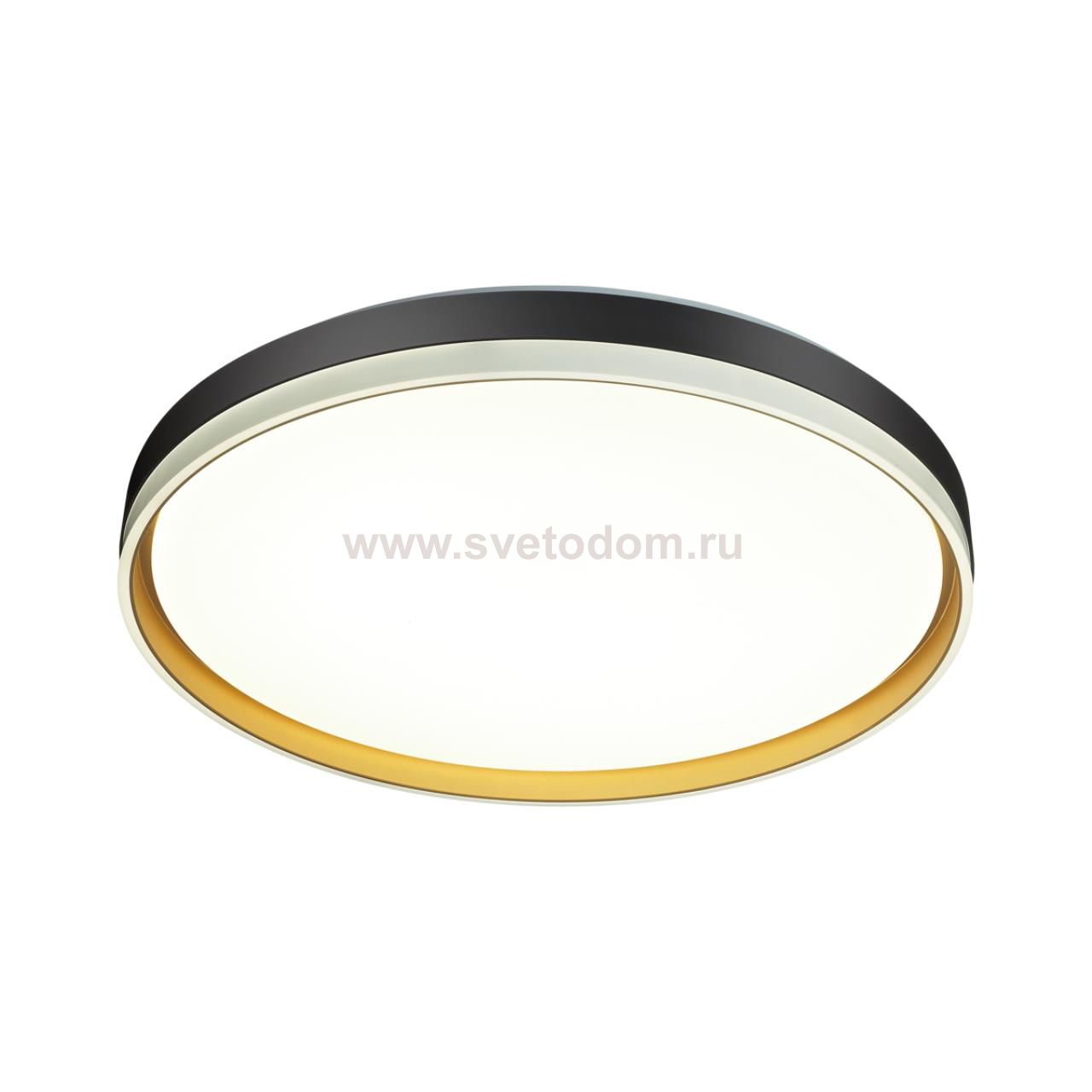Светильник 7619/EL линии SAVI состоит из металлического основания (базы) и пластикового рассеивателя. Материал рассеивателя - качественный акрил белого цвета с матовой поверхностью, без текстуры. Пластик обеспечивает светильнику равномерное рассеивание и хорошее светопропускание. Форма плафона: круглая, декорирована ободом из пластика черного и золотистого цветов. Степень защиты IP43 позволяет использовать светильник в определенных зонах влажных помещений. В комплект входит заменяемый LED модуль с линзами, мощностью 72Вт, которая соответствует лампе накаливания 520Вт. А также пульт ДУ, с помощью которого осуществляется плавное изменение цветовой температуры 3000-6000К, изменение яркости, переход в режим переключения теплого/белого/холодного/ночного света. Светильник имеет функцию "память".