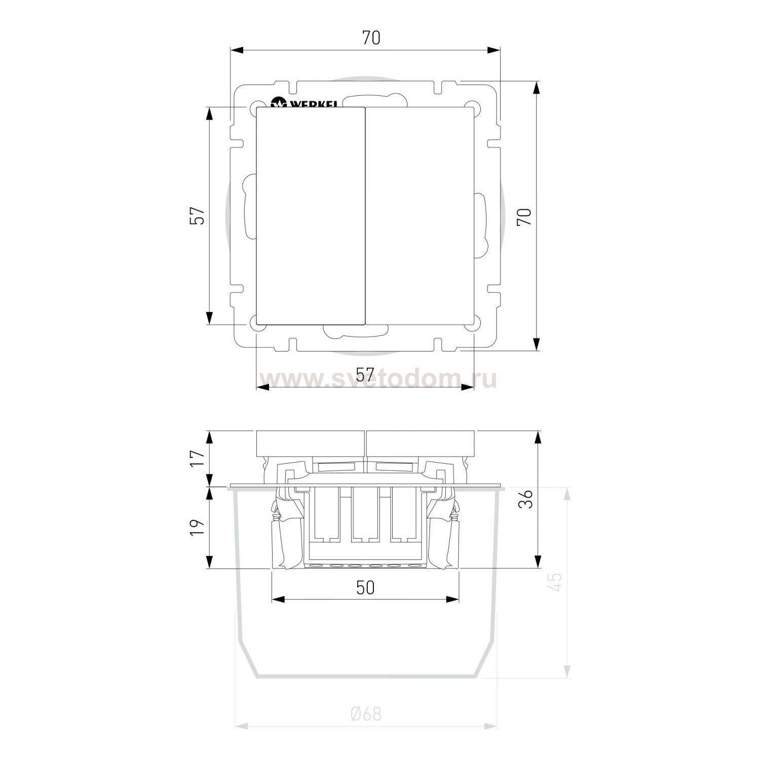 <div class="row mb-3"> <div class="col-12"> <p style="margin-top: 15px;">Механизм двухклавишного выключателя оснащен матовой лицевой панелью. Матовая поверхность – это современный тренд, задающий стиль вашему интерьеру. Она не бликует, обладает бархатистой фактурой и тактильной мягкостью. Дымчатый цвет будет эффектно смотреться в любом интерьерном пространстве и гармонично сочетаться с любыми материалами.</p> <p>Механизм выключателя оснащен качественной контактной группой из фосфорной бронзы и технического серебра (90% серебра, 10% никеля), которая выдерживает большую нагрузку и обладает большим сроком службы.</p> <p>Суппорт из нержавеющей стали позволяет надежно зафиксировать изделие в подрозетнике. Механизм с суппортом из нержавеющей стали устанавливается в стандартную монтажную коробку и надежно фиксируется с помощью винтов и распорных лапок. Декоративные рамки легко устанавливаются и надежно фиксируются на суппорте при помощи клипс Easy Click.</p> <p>Механизмы с матовыми накладками комбинируются с любыми рамками Werkel. Совместимость дает большой простор в создании множества уникальных сочетаний.</p> </div> </div>