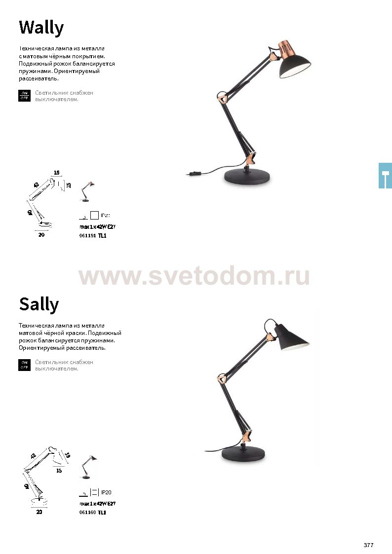 Настольная лампа от известной итальянской фабрики Ideal lux из каталога Moderno в современном стиле под артикулом WALLY TL1 (61191) серии WALLY имеет ряд отличительных характеристик: Техническая лампа из металла с матовым чёрным покрытием. Подвижный рожок балансируется пружинами. Ориентируемый рассеиватель.