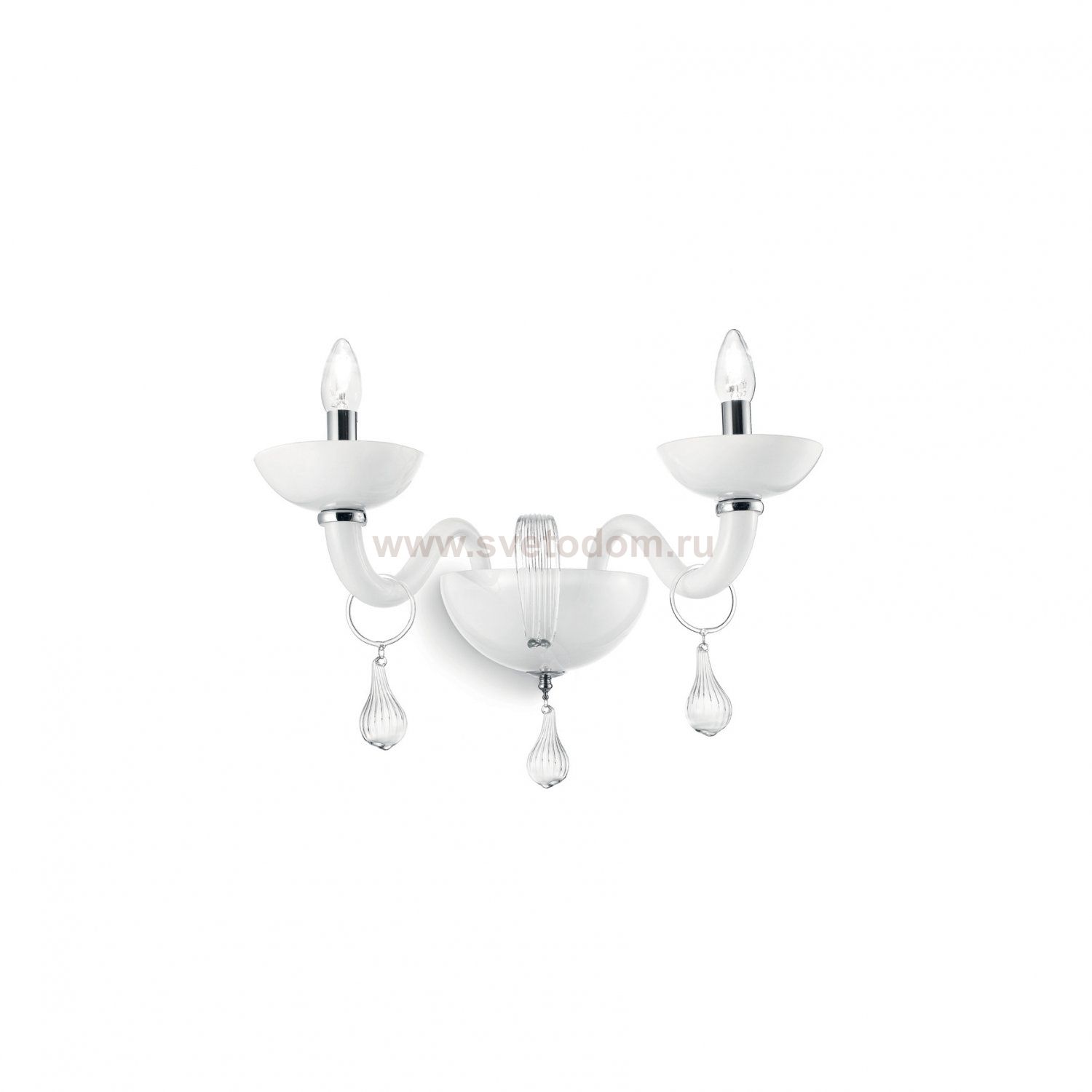 Светильник бра от известной итальянской фабрики Ideal lux из каталога Classico в венецианском стиле под артикулом WINDSOR AP2 (26299) серии WINDSOR имеет ряд отличительных характеристик: Люстра из дутого стекла ручной работы с покрывающими патроны колбами и элементами из хромированного металла. Цепь скрыта бархатной тканью.