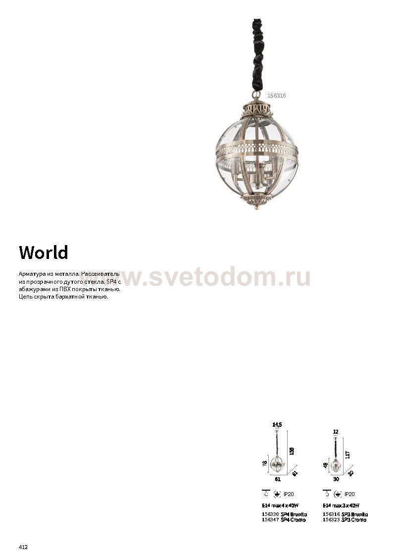 412 Отзывы Люстра Ideal lux WORLD SP3 BRUNITO (156316)Пока нет отзывов об этом товаре, напишите и он обязательно появится после модерации! Оставить свой отзывПохожие товары Другие товары магазина Фото