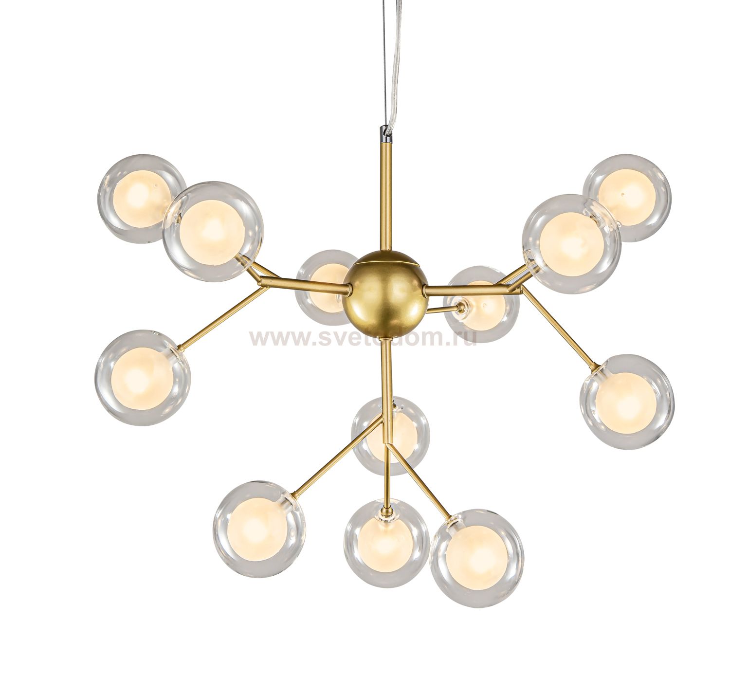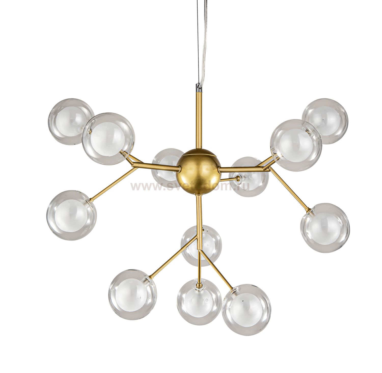 Светильник крепится при помощи прочной металлической нити, которая соединяет потолочную планку и стержень, отходящий от шарообразного основания. Он представлен в четырех модификациях, различных по высоте, диаметру и числу лампочек. Подходит для оформления гостиных, торговых залов и развлекательных заведений.