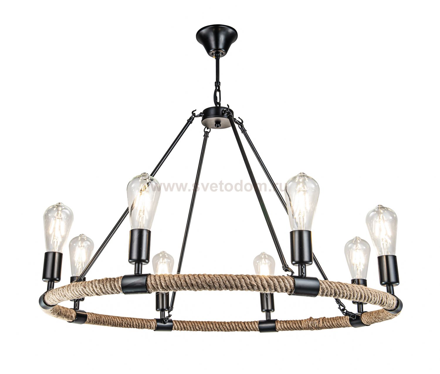 Лаконичность и простота характеризуют это изделие. Люстра на металлическом основании, декорированная джутовой веревкой выглядит минималистично и просто, но при этом очень стильно и декоративно. Отлично подойдет для интерьеров в современном стиле.