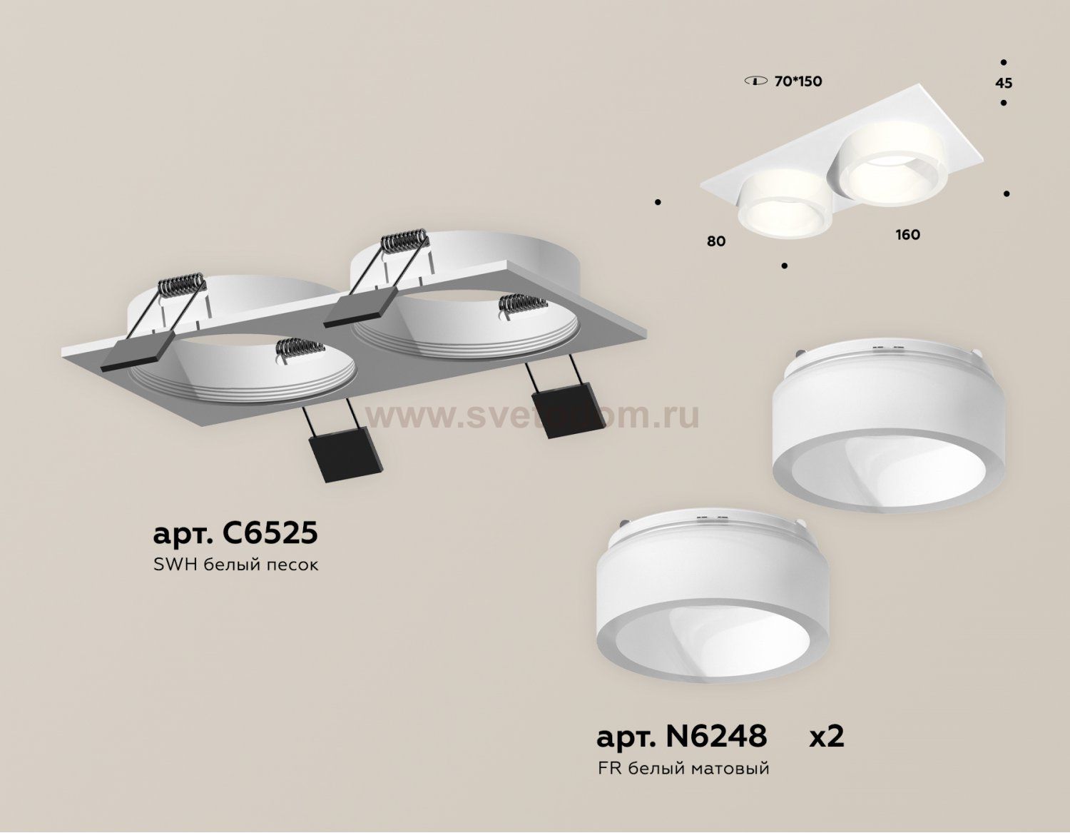 встраиваемый корпус 160*80 (цоколь GU5.3 в комплекте), насадка передняя D60 (2шт) Отзывы Комплект встраиваемого светильника с акрилом Ambrella XC6525065 XCПока нет отзывов об этом товаре, напишите и он обязательно появится после модерации! Оставить свой отзывПохожие товары Другие товары магазина Фото