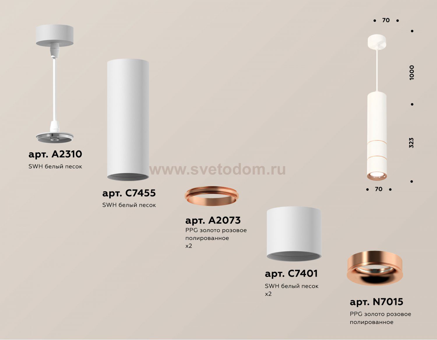 крепеж подвесной D70, корпус накладной D70*3, коннектор*2, насадка передняя D70 Отзывы Комплект подвесного светильника Ambrella XP7401100 XPПока нет отзывов об этом товаре, напишите и он обязательно появится после модерации! Оставить свой отзывПохожие товары Другие товары магазина Фото