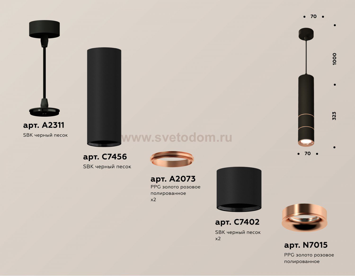крепеж подвесной D70, корпус накладной D70*3, коннектор*2, насадка передняя D70 Отзывы Комплект подвесного светильника Ambrella XP7402085 XPПока нет отзывов об этом товаре, напишите и он обязательно появится после модерации! Оставить свой отзывПохожие товары Другие товары магазина Фото