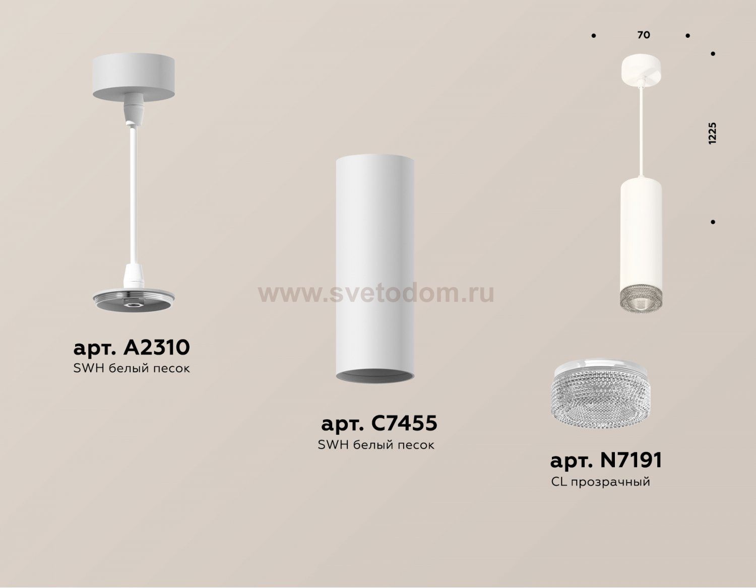крепеж подвесной D70, корпус накладной D70, насадка передняя D70 Отзывы Комплект подвесного светильника с композитным хрусталем Ambrella XP7455001 XPПока нет отзывов об этом товаре, напишите и он обязательно появится после модерации! Оставить свой отзывПохожие товары Другие товары магазина Фото